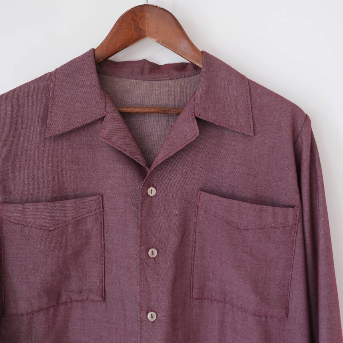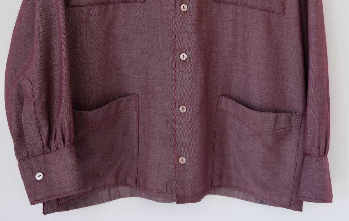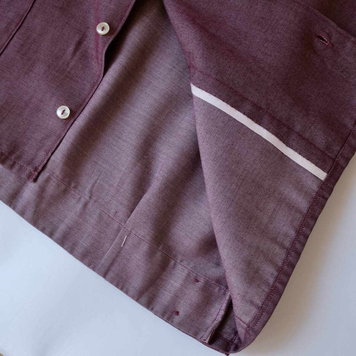 【 ヨーロッパ ビンテージ 】パープル シャンブレー 長袖シャツ ジャケット / 紫系/ オープンカラー フランス イギリス ワーク デニム 開襟