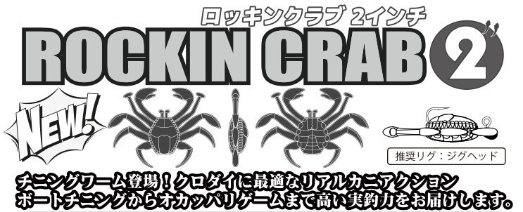 クロダイ用ジグヘッドにジャストサイズなボディ形状。壁際を丁寧にフォールさせると、ロッキンクラブのカニ型状の手足のパーツは微振動を起こし、ターゲットにアピールします。