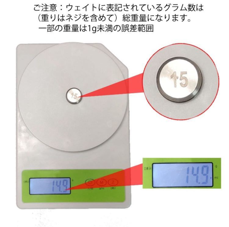 複数の重さの種類を選択可能:色々な重さのラインアップがあるので自分にあったバランスを見つけられると思います.ウェイトに表記されているグラム数は(重りはネジを含めて)総重量になります。一部の重量は1g未満の誤差範囲内にあります