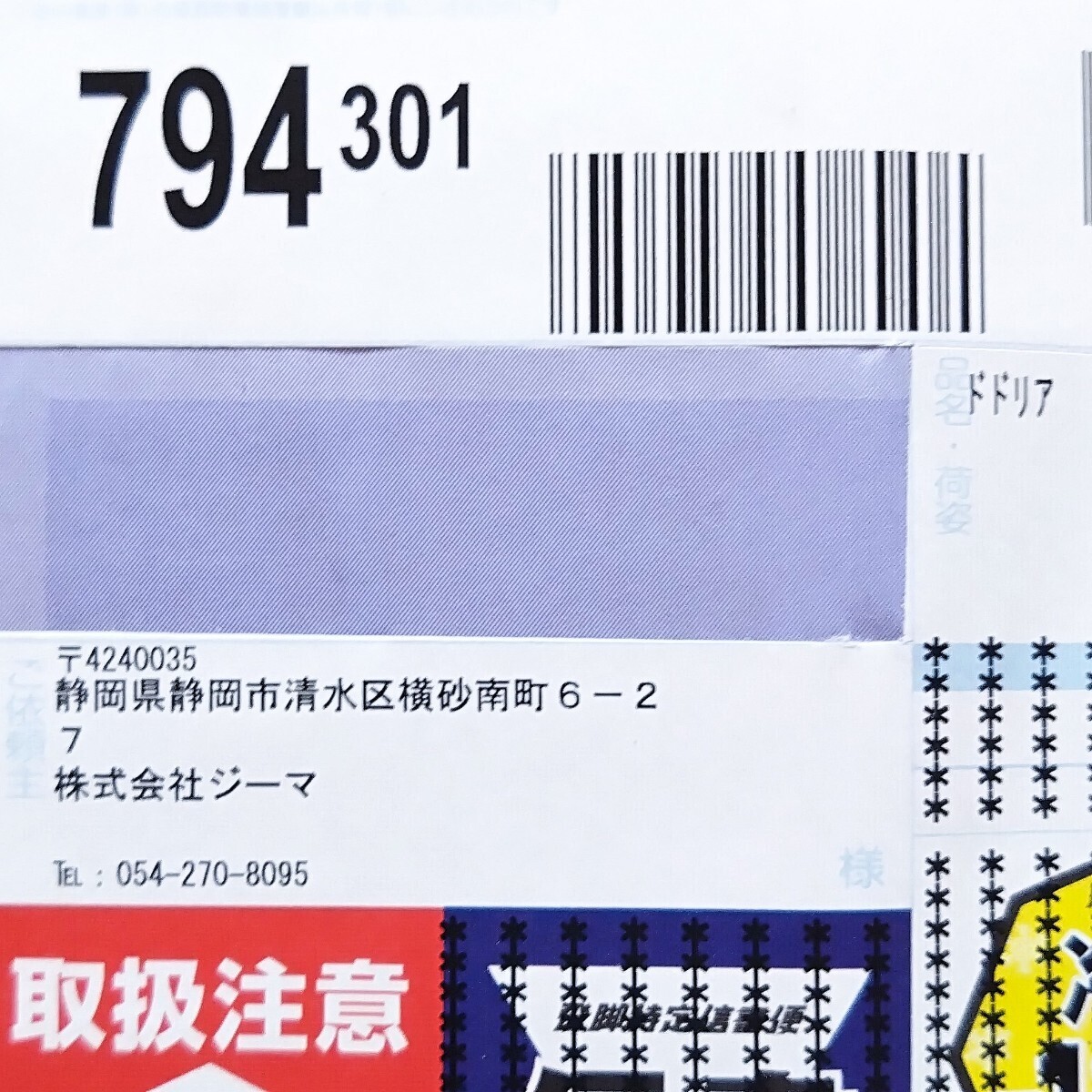元々の伝票を剥がしてラップを巻いて発送いたします。