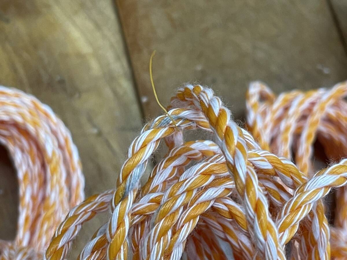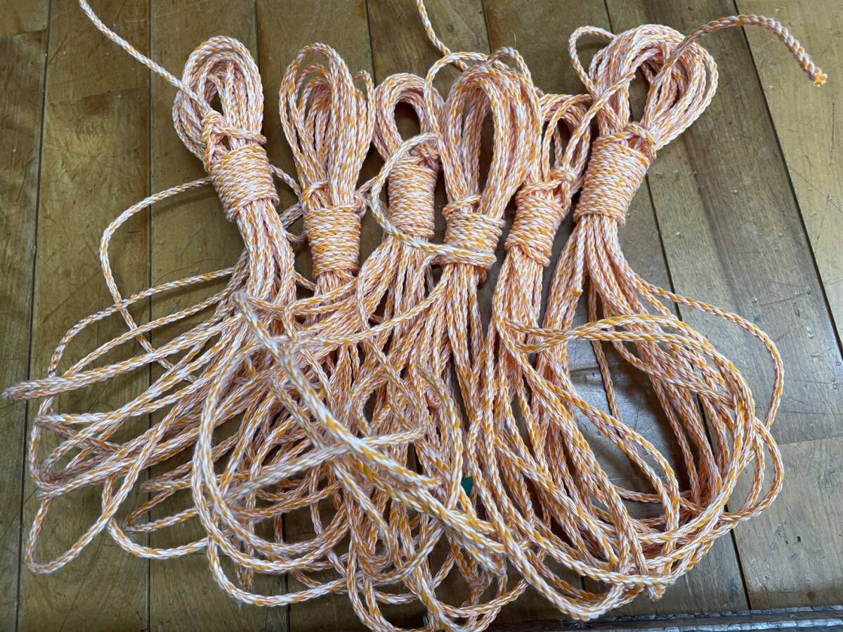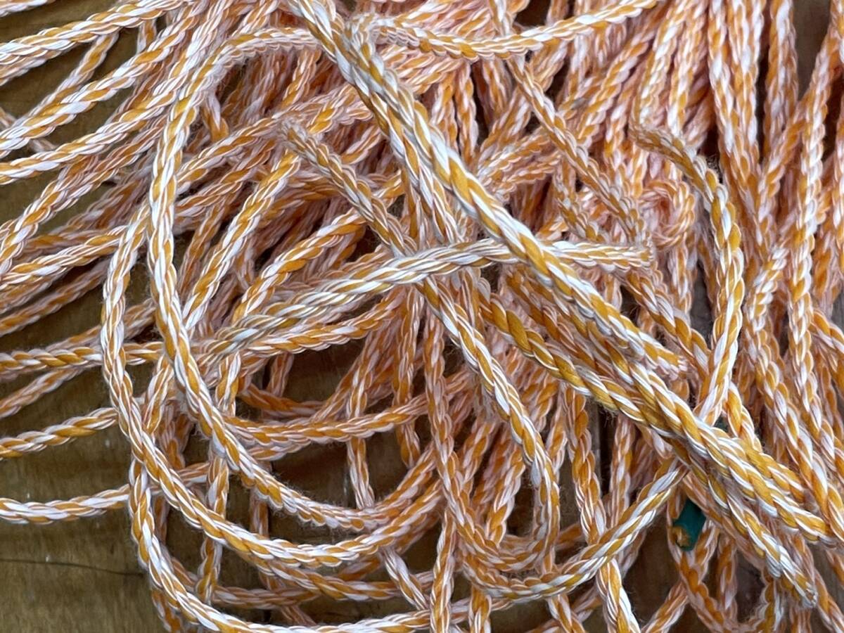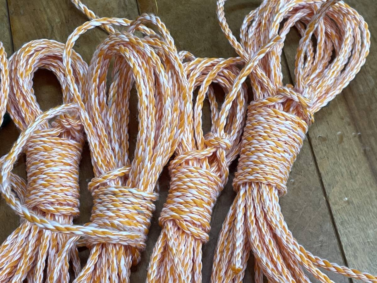 激安☆新品・国産★6巻セット//橙・白/混撚(KP) 三つ打ちロープ◆4mm 0.3Kg