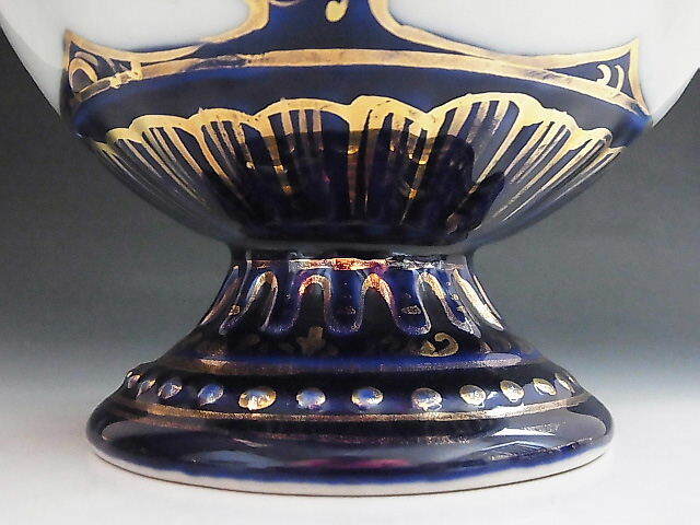 初期輸出用 コバルトブルー 金彩 花文様 花瓶 ◆ オールドニッポン