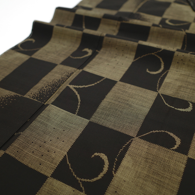 ベージュの濃淡の色合いで 市松に唐草が織り出されています。