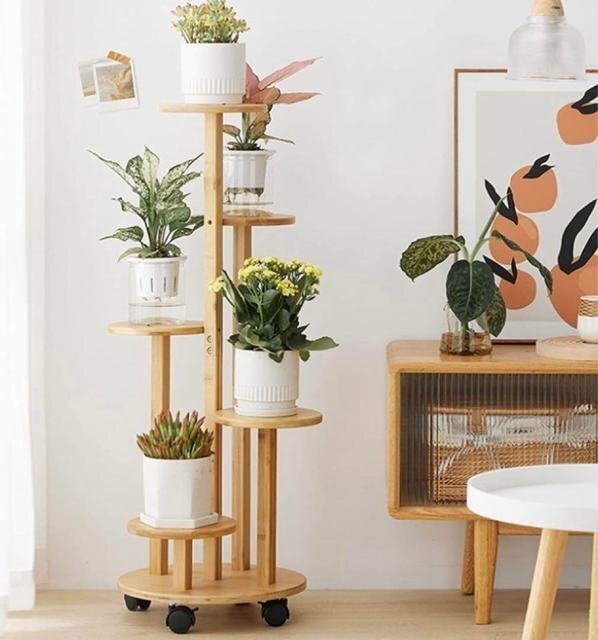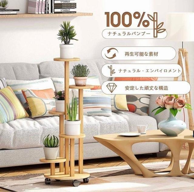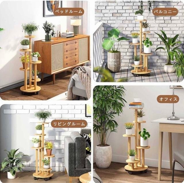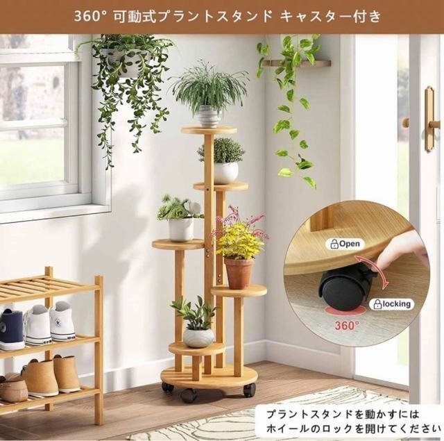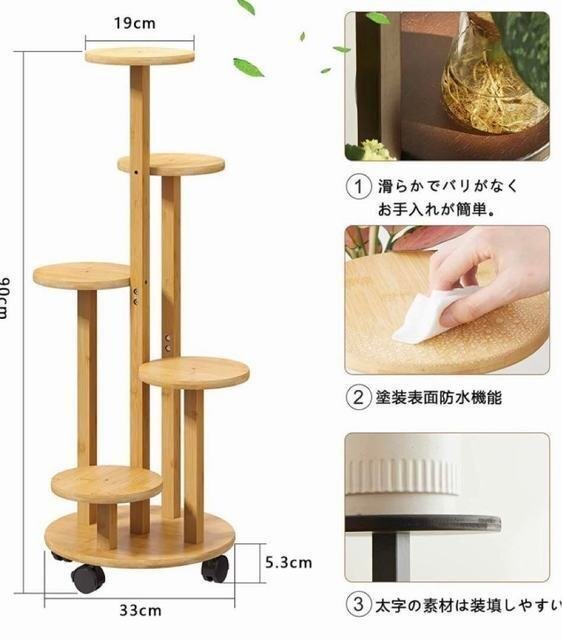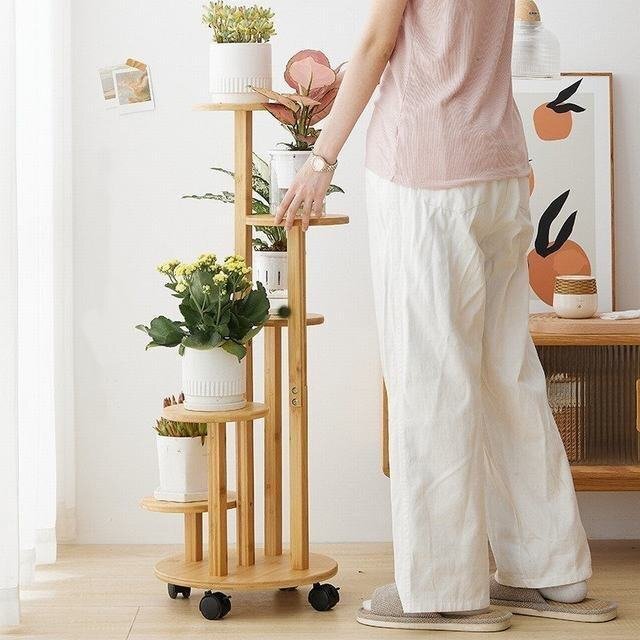 フラワースタンド 高品質の天然竹材製 キャスター付きで動きやすく、割れたり変形したりしにくいです。防水性と防湿性があります、竹と木のサポートは滑り止めで床を傷つけません。