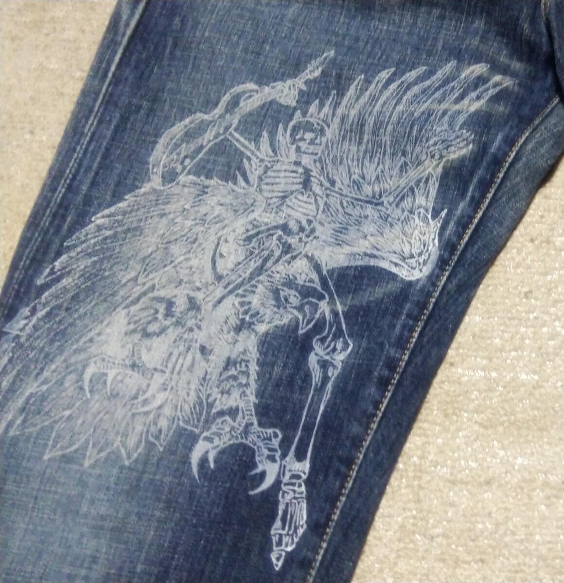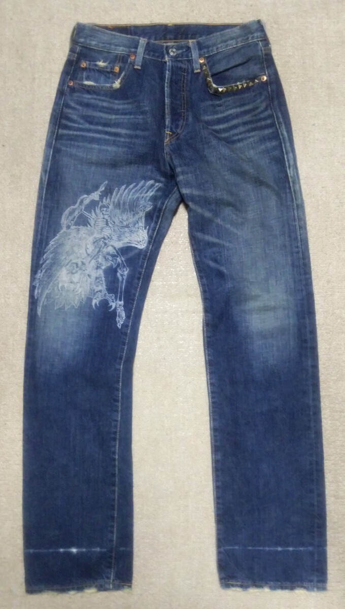 雰囲気抜群のビンテージ加工にロックテイスト満載のスタッズスカルプリントリメイク加工がカッコいい、貴重なLevi's03501レギュラーストレートデニムになります!状態GOODの501をお探しの方はこの機会に是非いかがですか(^o^)