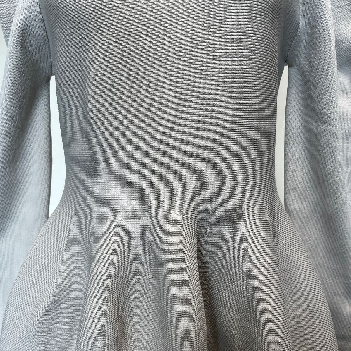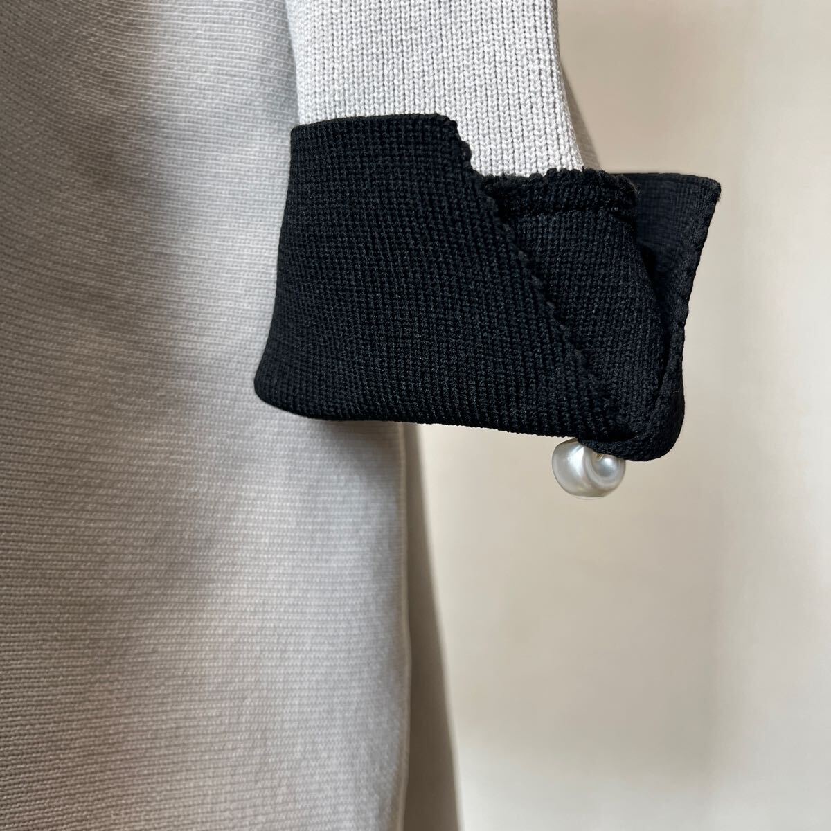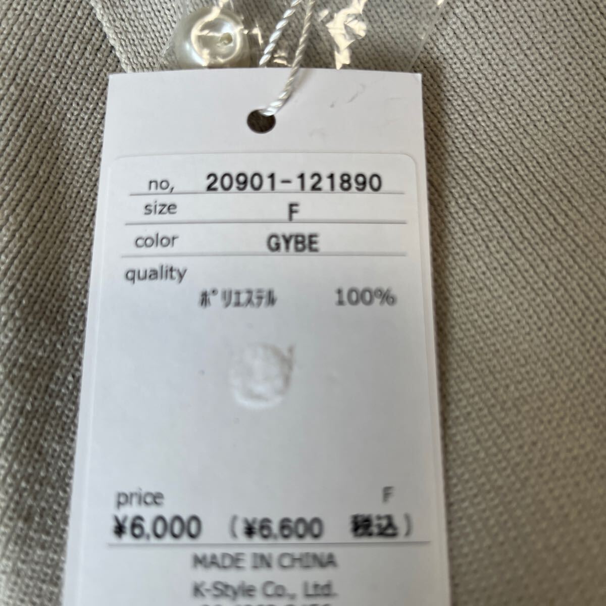 6-6新品 長袖ニット襟付きシャツワンピース タックスリーブボリュームフレアニットワンピースパール釦 グレイッシュベージュ 9号 M