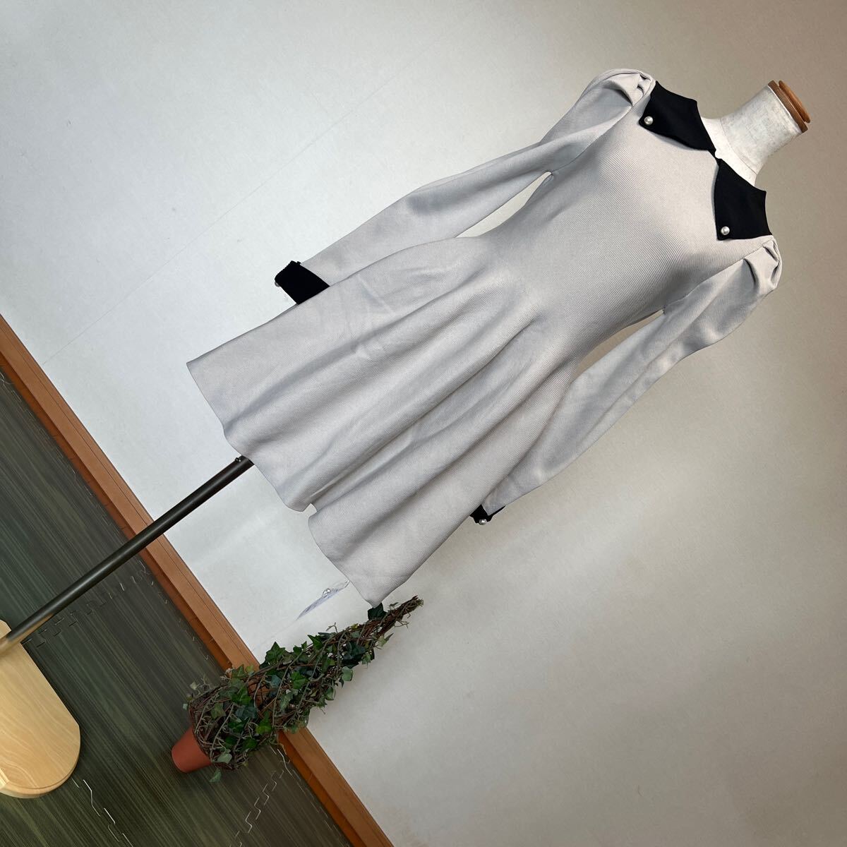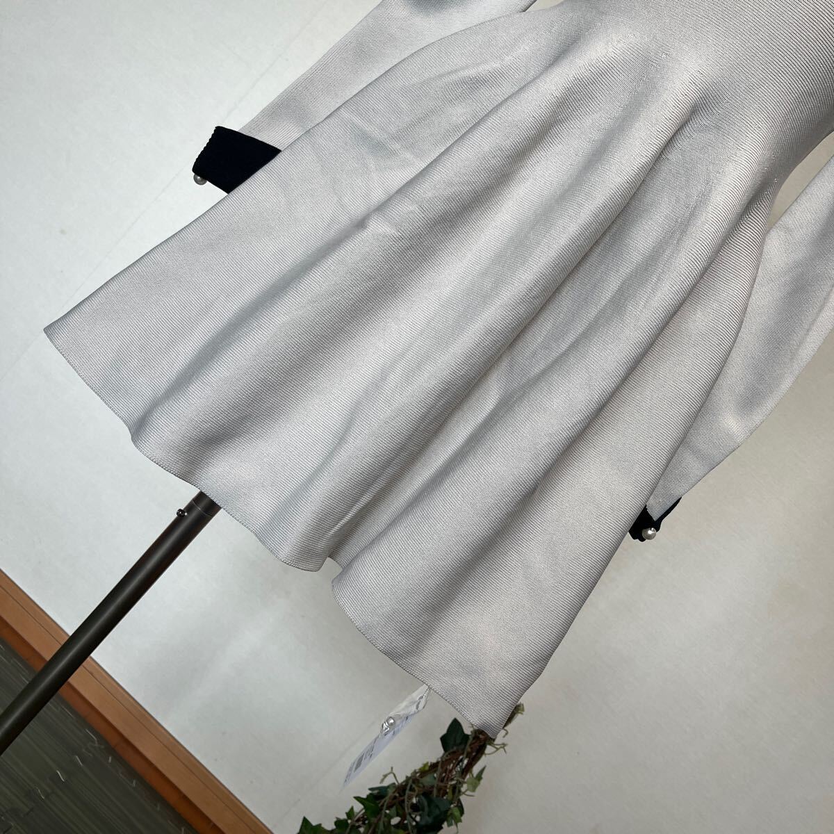 新品のおしゃれニットワンピース。型崩れしにくいので、きれいなシルエットを保って着用していただけます! 配色になっているので、コーディネートが締まりフェミニンガーリーに仕上げてくれます。 特別な日やディナーコーデにもおすすめのアイテムです。