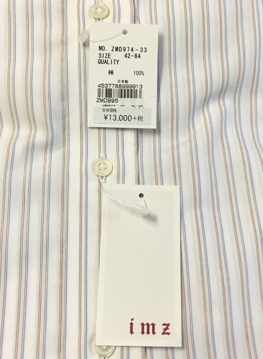 IMZ イムズ 長袖カッタウェイ 日本製 綿100% 形態安定 42-84 三越伊勢丹 山喜 定価14.300円