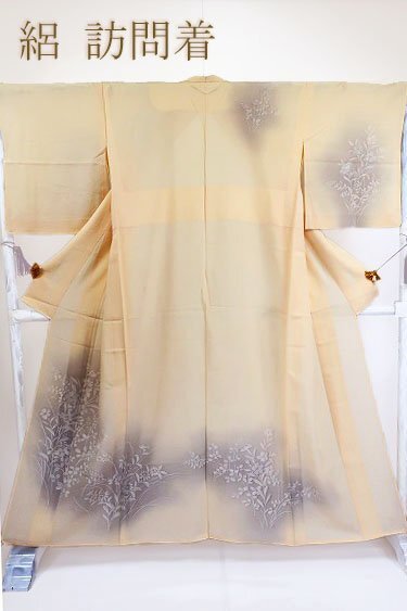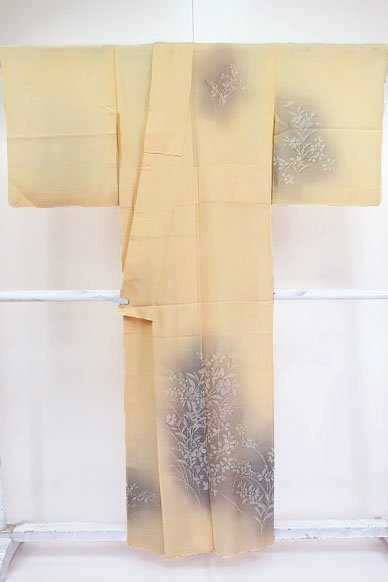 【送料無料】絽 夏着物 訪問着 オレンジみのクリーム 萩 撫子 秋草 身丈153cm 裄丈65cm 仕立て上がり 正絹 カジュアル kimono m-6161 |