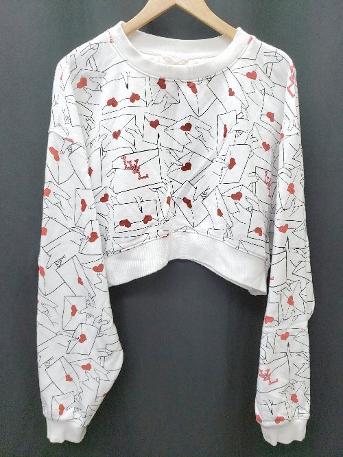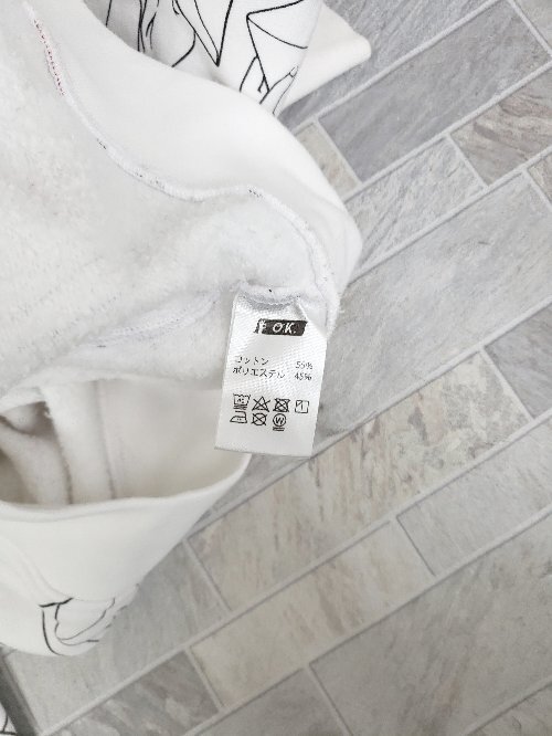 ◇ O.K. オーケー 総柄 長袖 クロップド トレーナー ホワイト ブラック レッド レディース P