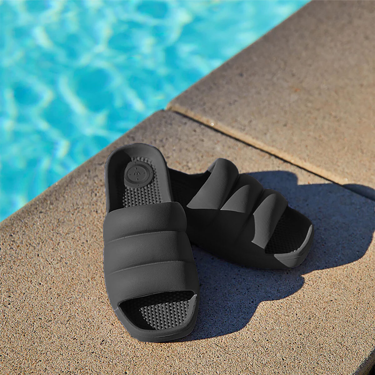 このスライドサンダルは、流行の万能なスタイルと究極の快適さを兼ね備えています。