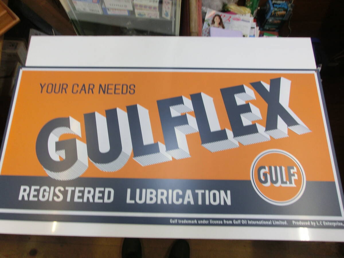 看板 GULFLEX ガルフオイル YOUR CAR NEEDS サイズ45cmx93cmぐらい