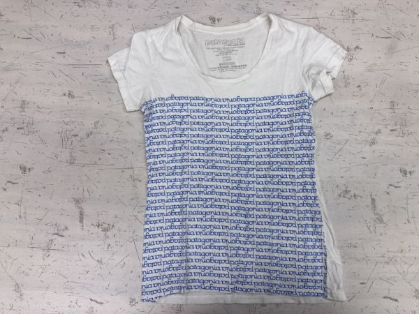 パタゴニア Patagonia アウトドア アメカジ パネル英字ボーダー 半袖Tシャツ カットソー レディース オーガニックコットン XS 白 です。