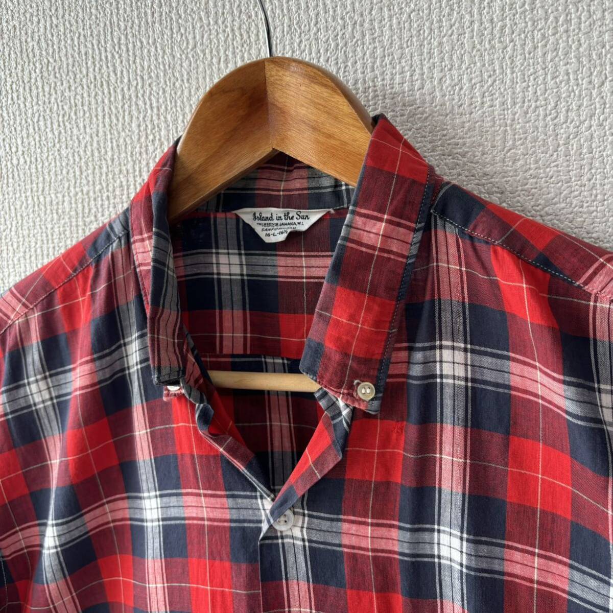 60s Island in the Sun チェック オープンカラー ボタンダウン シャツ L ビンテージ コットン 長袖 ボックス