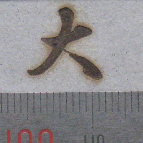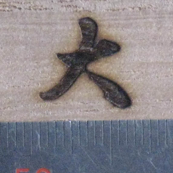 商品説明 | 大のミニ焼印です。 焼印は、柔らかいものにも押せるように6ミリの深彫の印面を採用しています。 写真の焼印を押した画像は、木板と厚紙と茶の革に押しています。 焼印についてのその他の説明はHPやyoutubeを参照下さい。 発送時に簡単な説明書を同封いたしますので御覧頂けれ ば幸いです。 直火式なので、コンロやバーナーで加熱して使います。 未使用ですが試し押しをしておりますので多少変色している 場合もあります点ご容赦下さい。 |