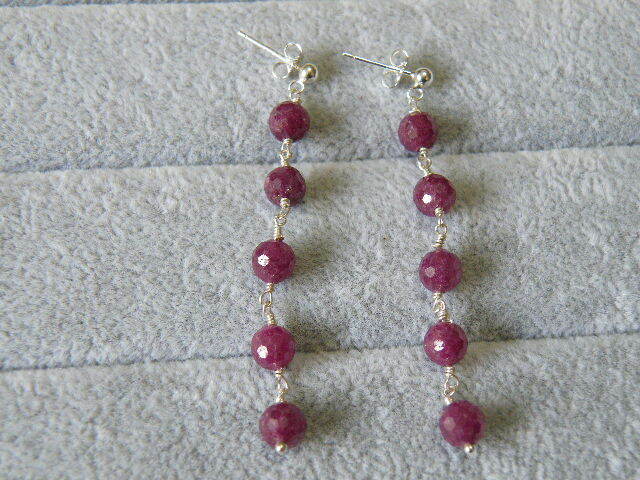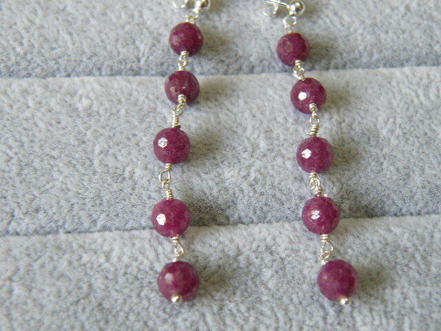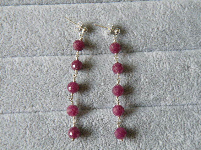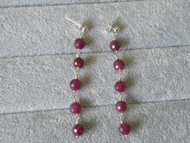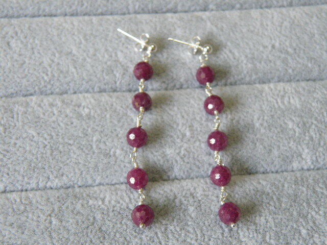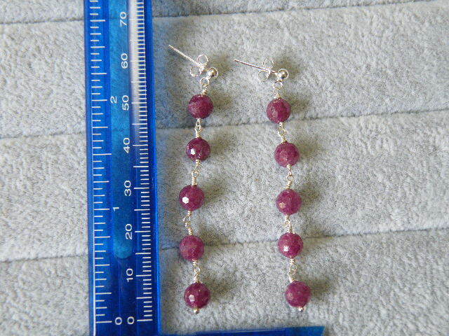 R00069.ルビー シルバー925 ハンドメイド ロングピアス
