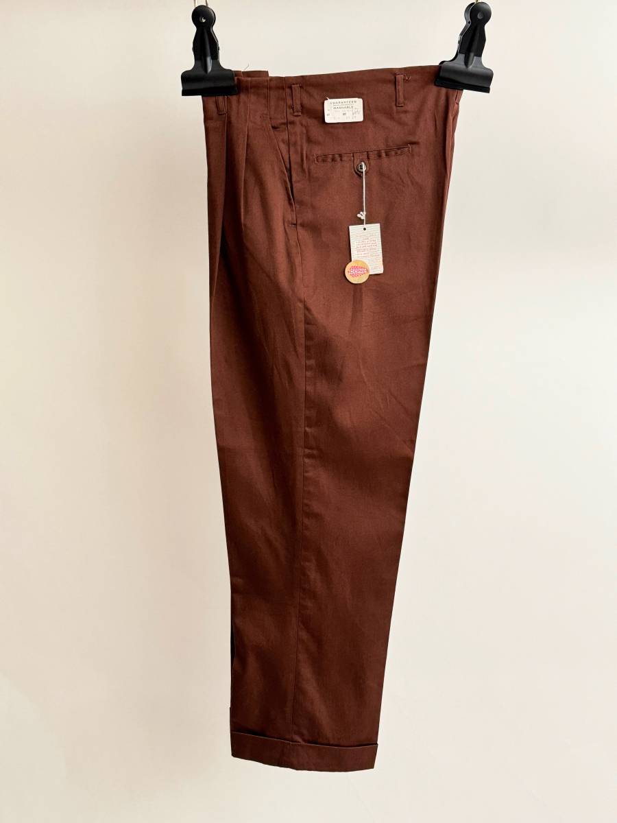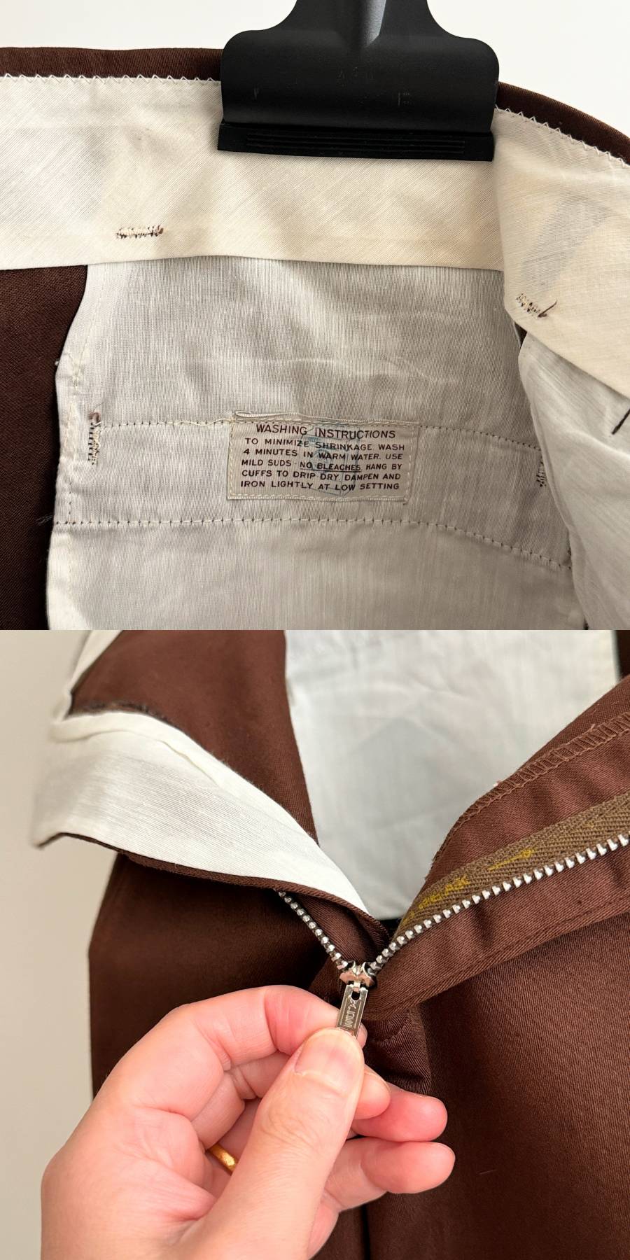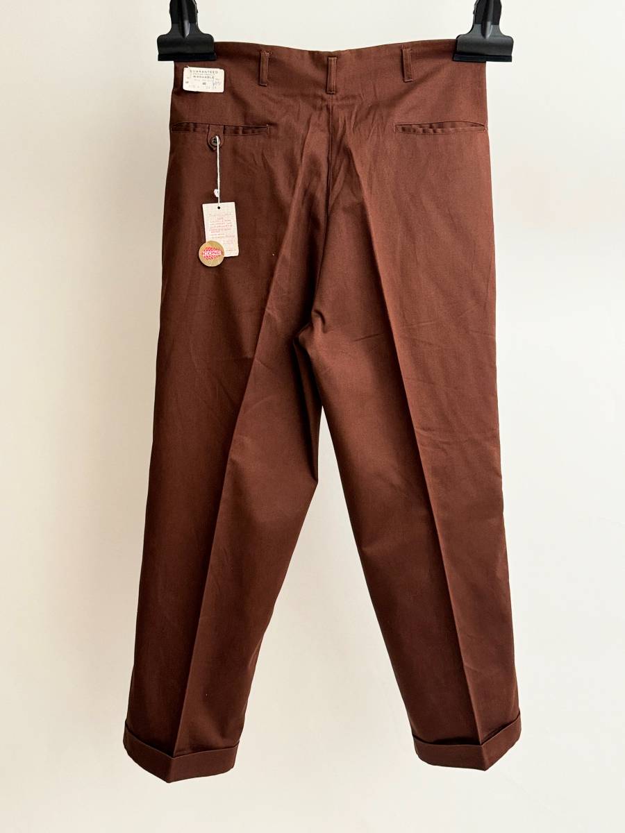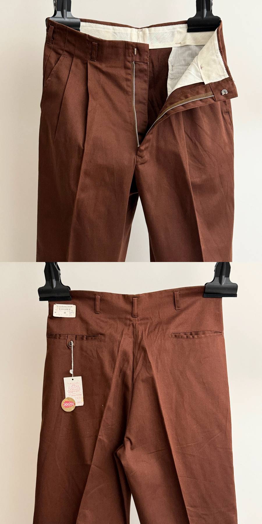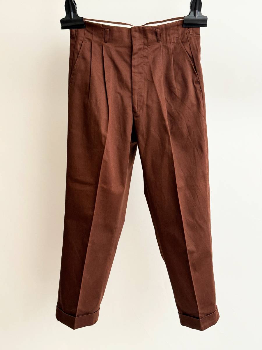 希少《 Dead Stock / CONE MILLS / W34 L29 》40s 50s デッド【 ビンテージ コーンミルズ 茶 コットン 2プリーツ スラックス 】