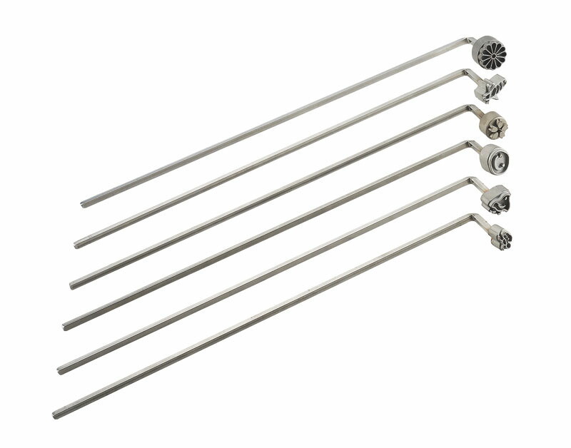 お菓子やパンに小さな模様をつけるだけでかわいらしさがグーンとアップします。革製品や木製品にも模様が付けられます。模様部分を直火に当て赤くなったら焼き入れができる状態です。火傷に注意して、ご使用ください。