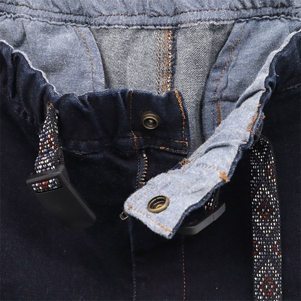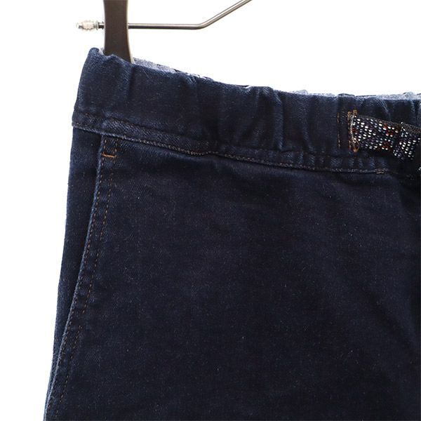 詳細 | ウエスト周りはゴム仕様となっており、ベルトが付いています。ベルトの先端に若干の劣化が有ります。デニム特有のスレとアタリが有ります。全体的に若干の色褪せが有ります。後面の左太腿付近に汚れが有ります。他、特に気になるようなダメージはございません。 |