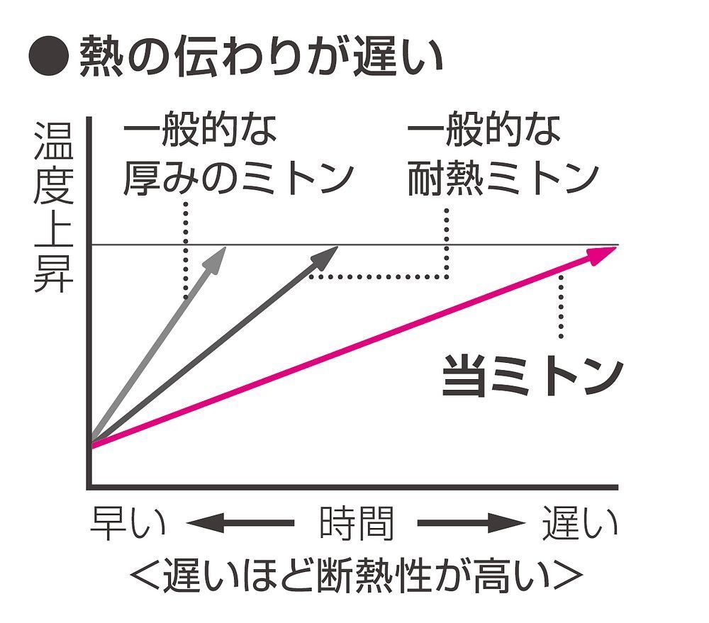 ●耐熱温度330℃、一般的なミトンに比べ断熱力2~3倍。