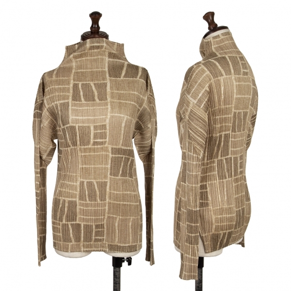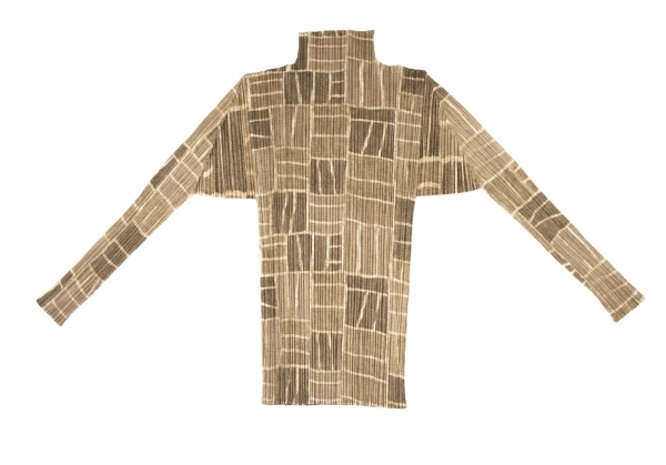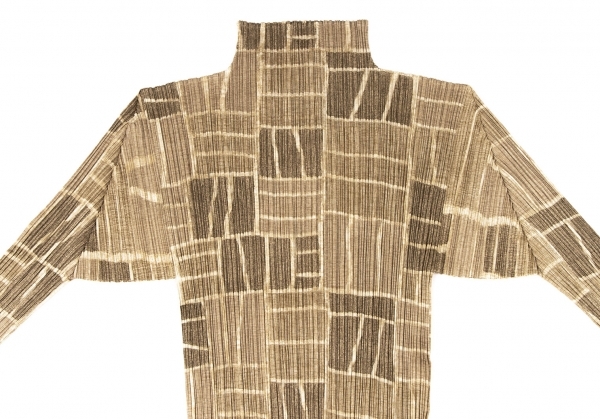 | プリーツプリーズPLEATS PLEASE プリーツタイルプリントハイネックカットソー ベージュ3 |