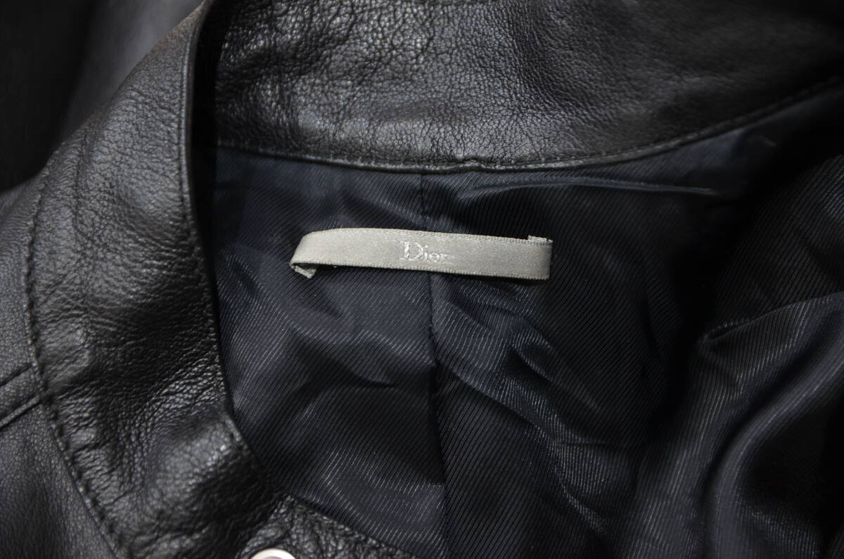 19ss DIOR MEN ディオール メン BEE プレート レザー シングル ライダース ジャケット 46 ブラック Y-327306