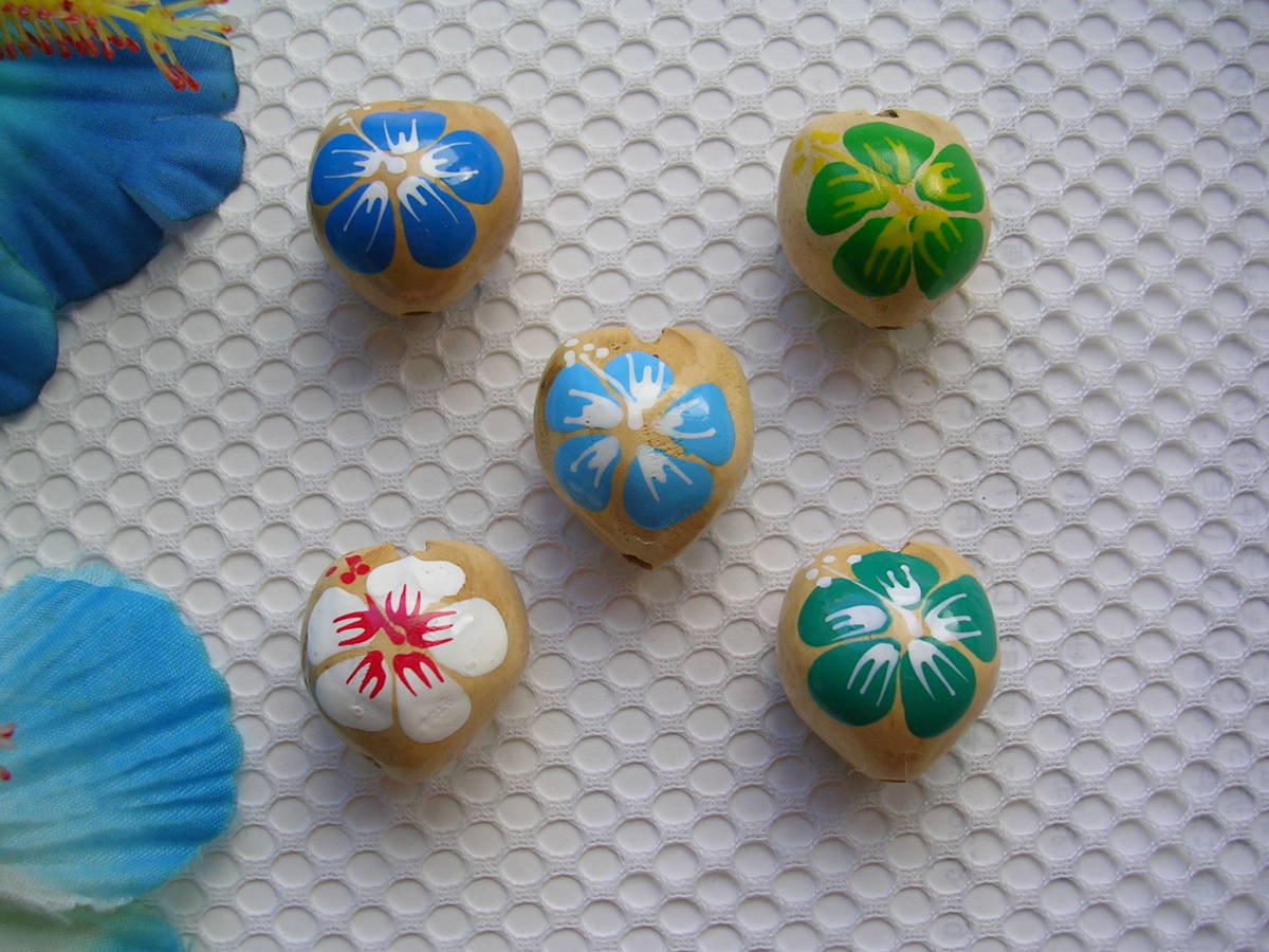 | ●ハワイ♪最新!希少ナチュラルカラーククイナッツ★M★ハイビスカス5種個 | |||