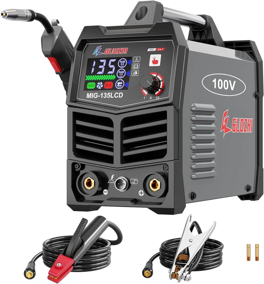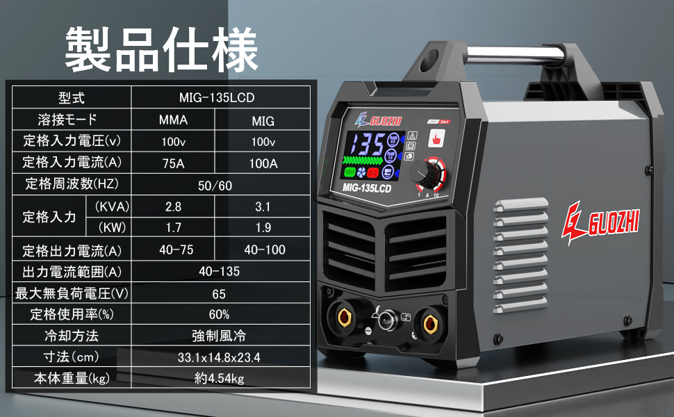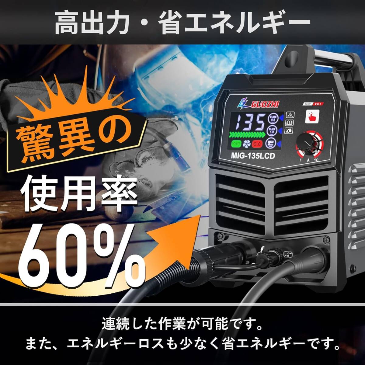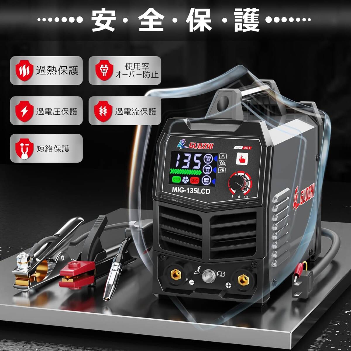 GZ GUOZHI 溶接機 100v 半自動 アーク溶接 ノンガスワイヤー溶接 1台2役 インバーター直流 半自動溶接機 定格使用率60% 小型 軽量 家庭用 電気溶接機 MIG-135LCD