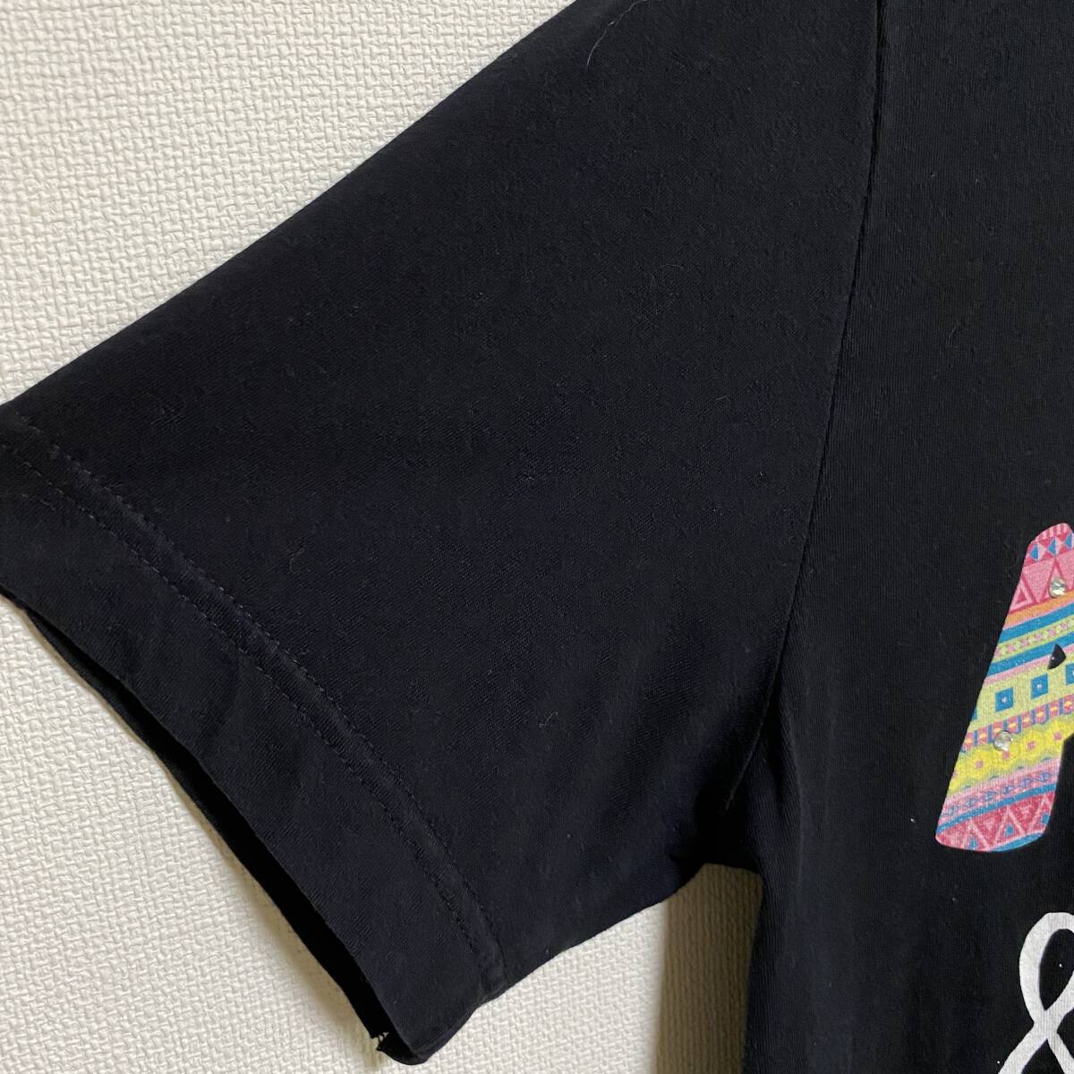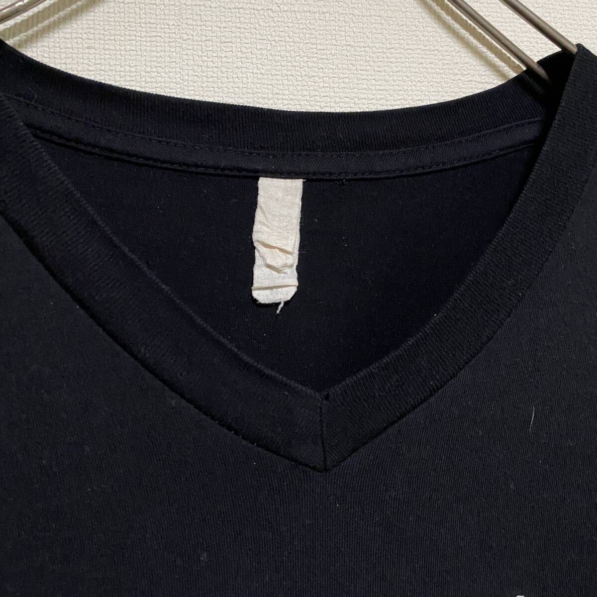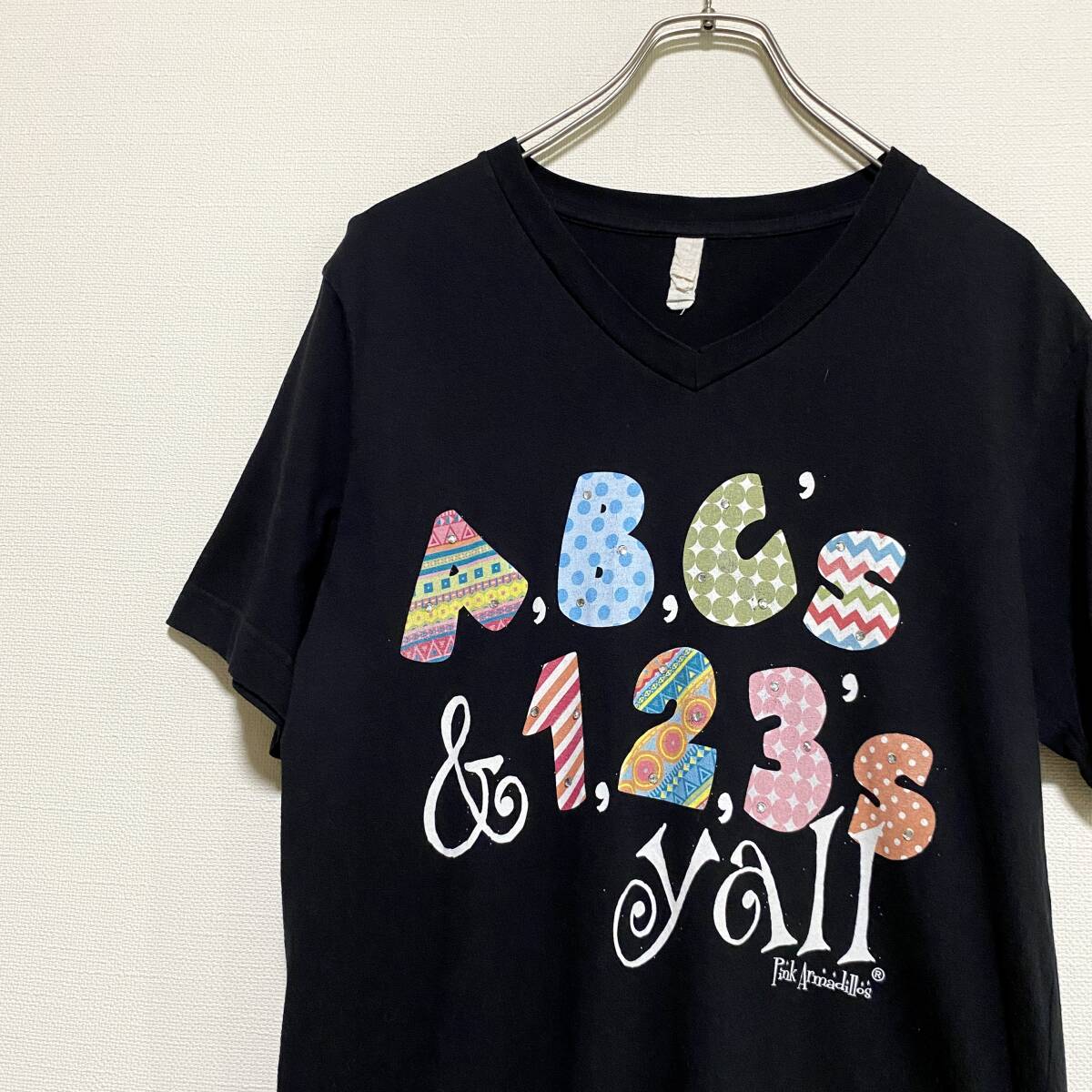 アメリカ古着 英字プリント 半袖 Tシャツ ラインストーン Vネック ブラック US古着 【I715】
