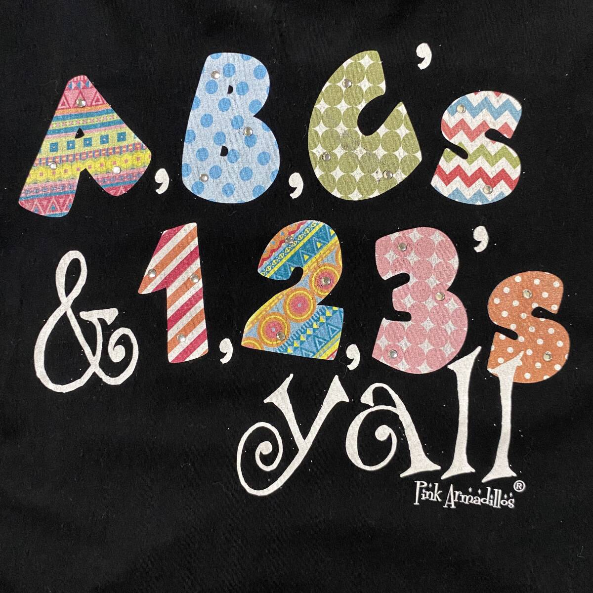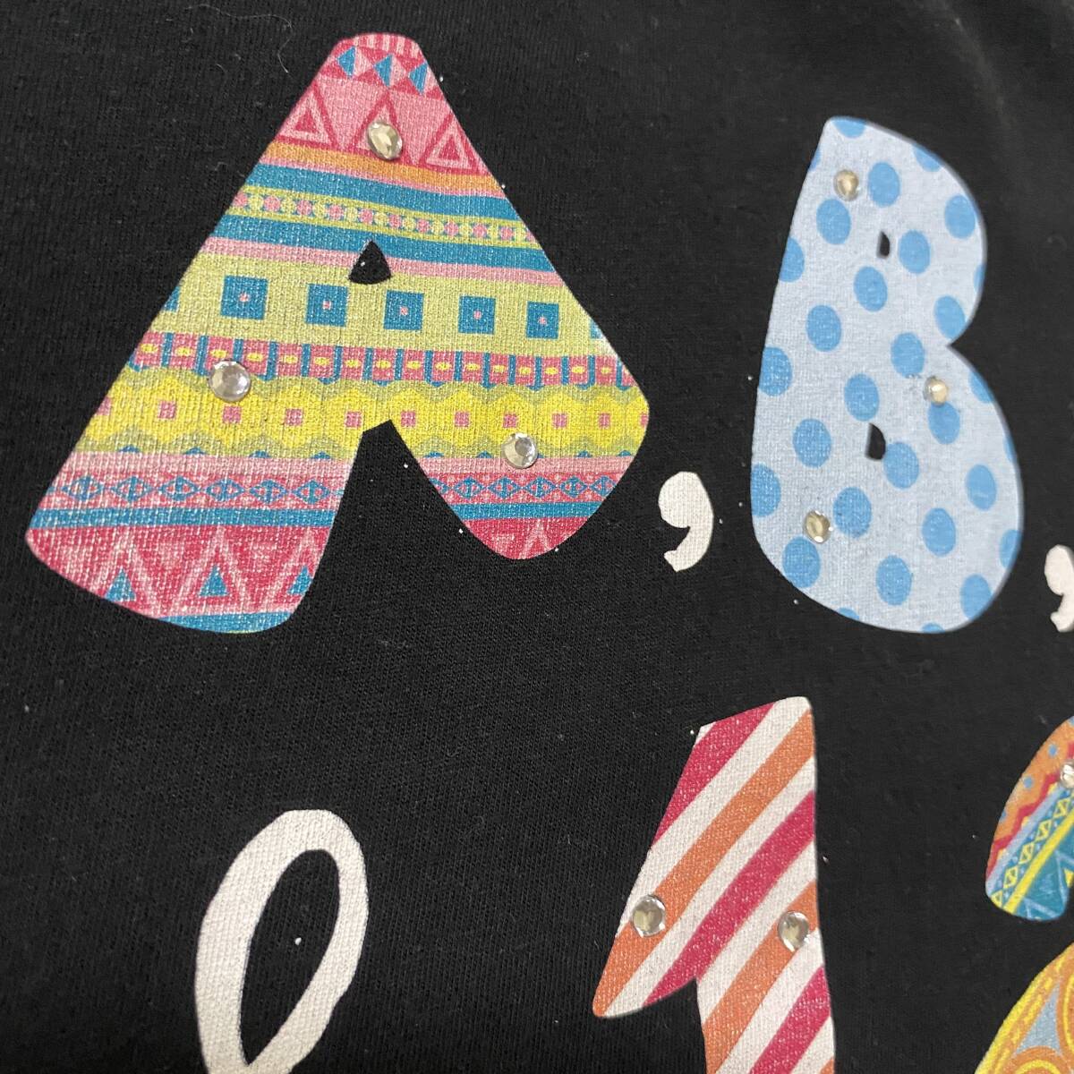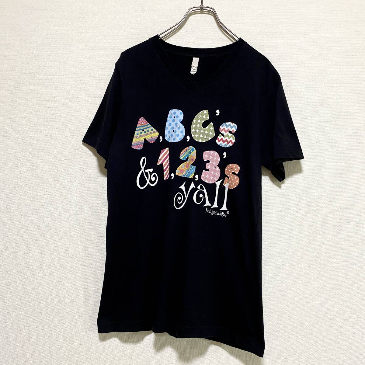 アメリカ古着 英字プリント 半袖 Tシャツ ラインストーン Vネック ブラック US古着 【I715】