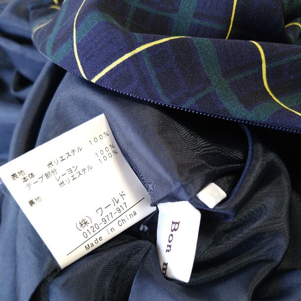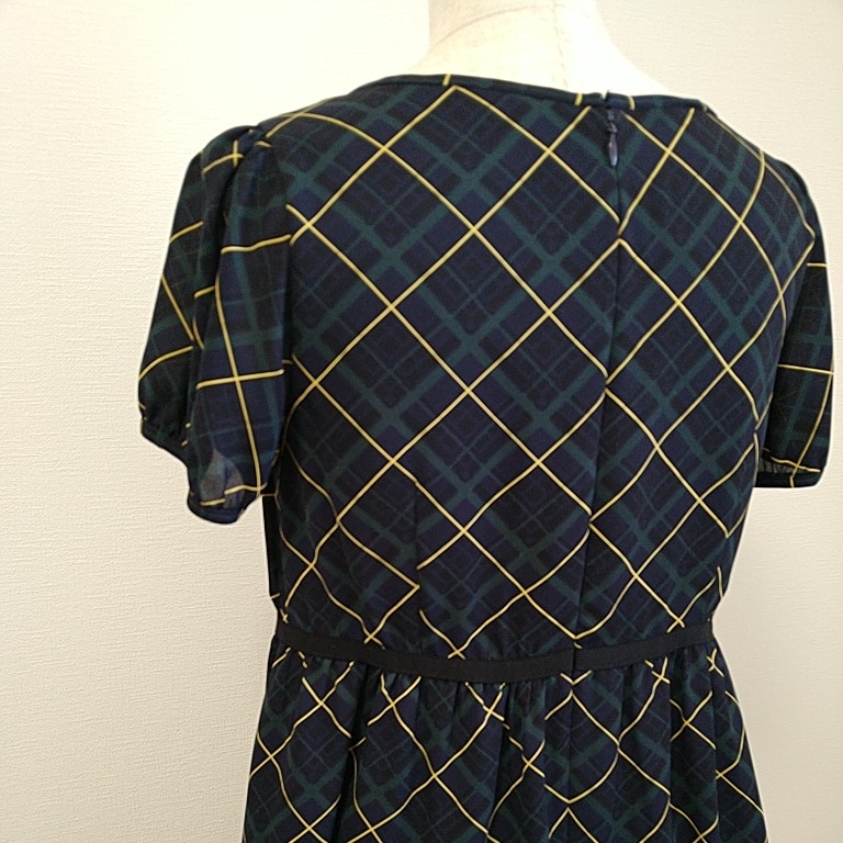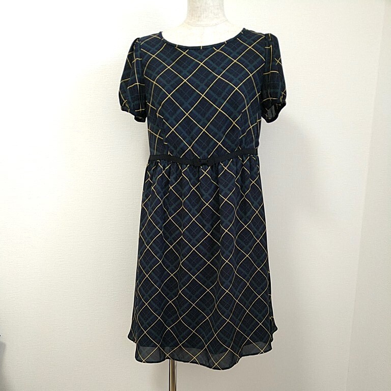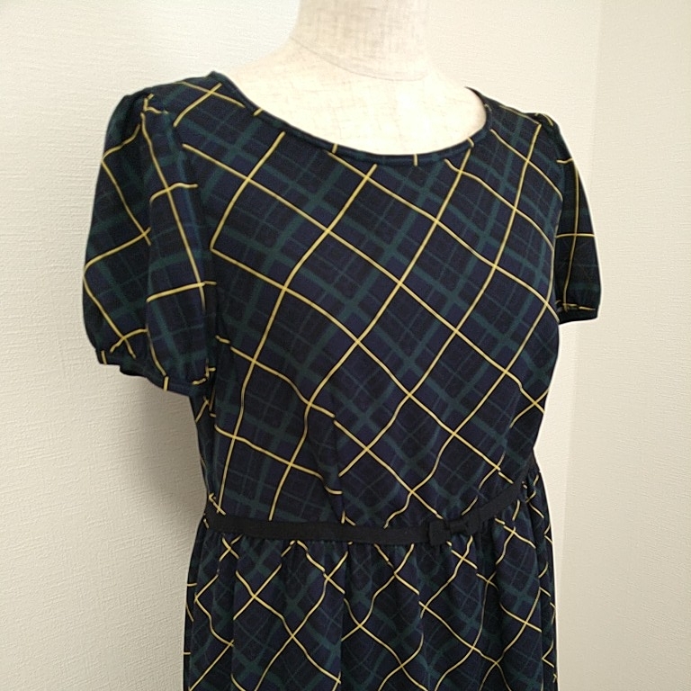 Bon mercerie 濃紺チェック ワンピース 夏 袖あり 7号くらい ボンメルスリー ワールド 薄手