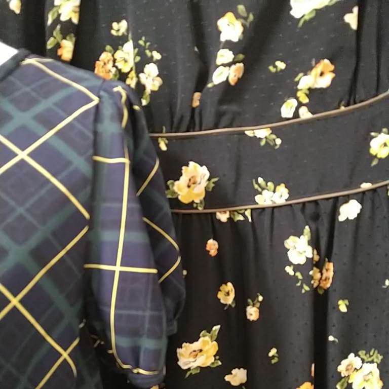 地の色は濃紺。黒ではありません。別途出品中の黒のワンピースと並べて撮影しました(画像5) 。参考です。