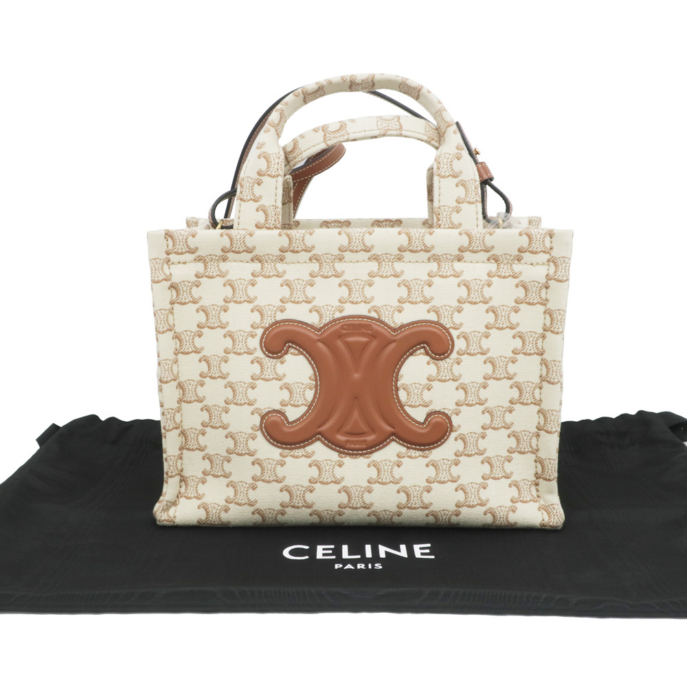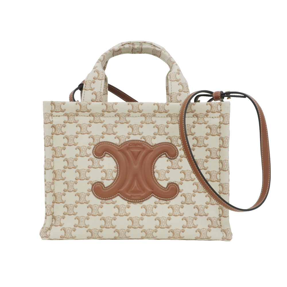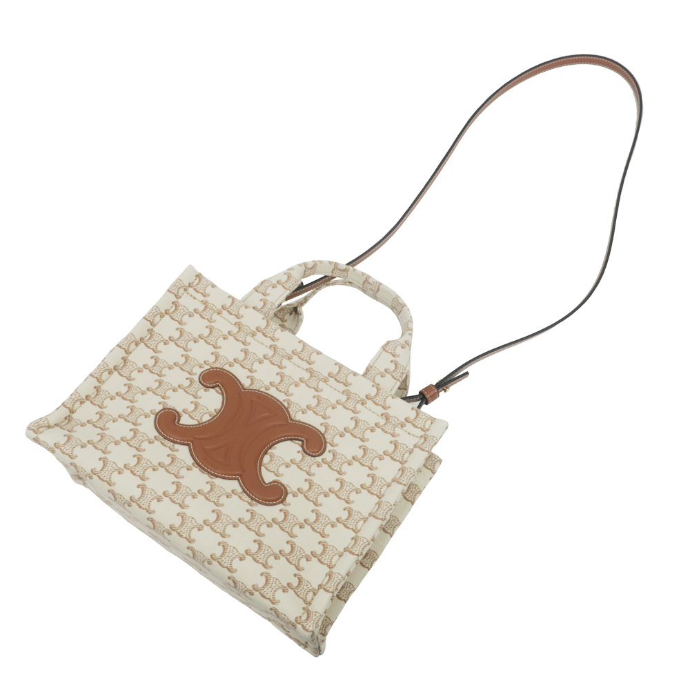 【名東】セリーヌ スモールカバタイス トリオンフ ホワイト キャンバスプリント 199162EZ6.01BC レディース その他