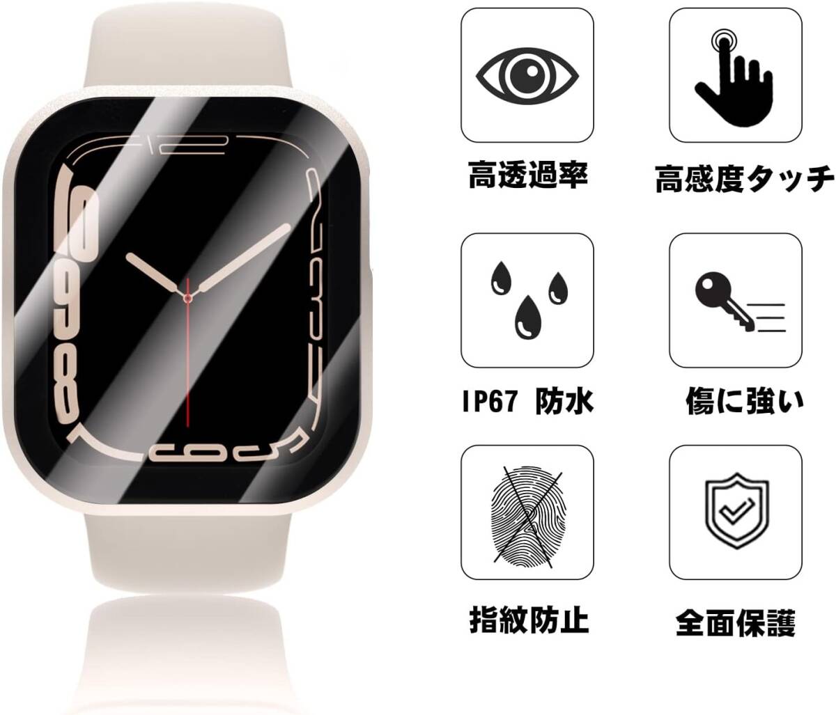 • 【防水・防塵ケース】シーリングリング内蔵したアップルウォッチ ケース、Apple Watchの画面にぴったりとフィットし、水の浸入を防ぎます。ほこりを完全に防ぎ、ケースを取り外して水を拭くすることを繰り返す必要はありません。疎水性撥油性抜群の強化ガラス表面により、カバー面に水が溜まらず、シャワー、手洗い、発汗、運動、雨など、日常の使用に適しています。 ※ご注意:ウォッチの画面とカバーの間に水が浸入する場合、保護カバーを取り外し、柔らかい布で水を乾かしてください。