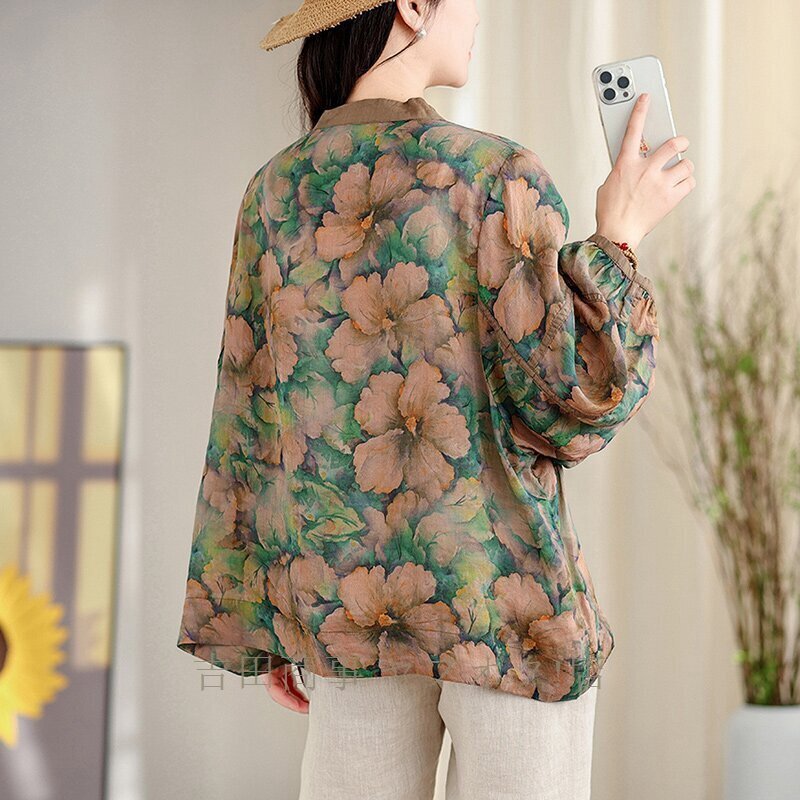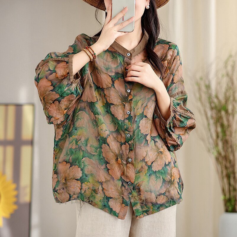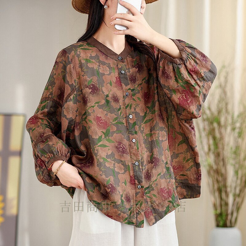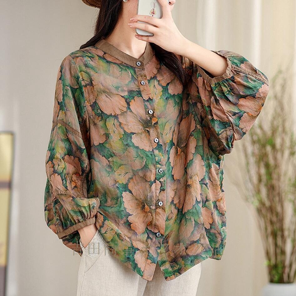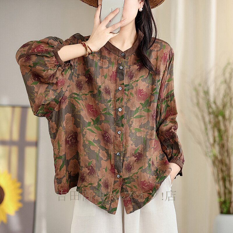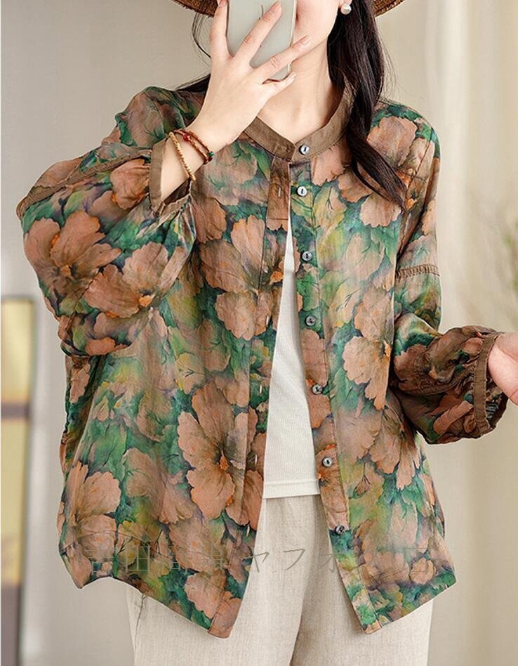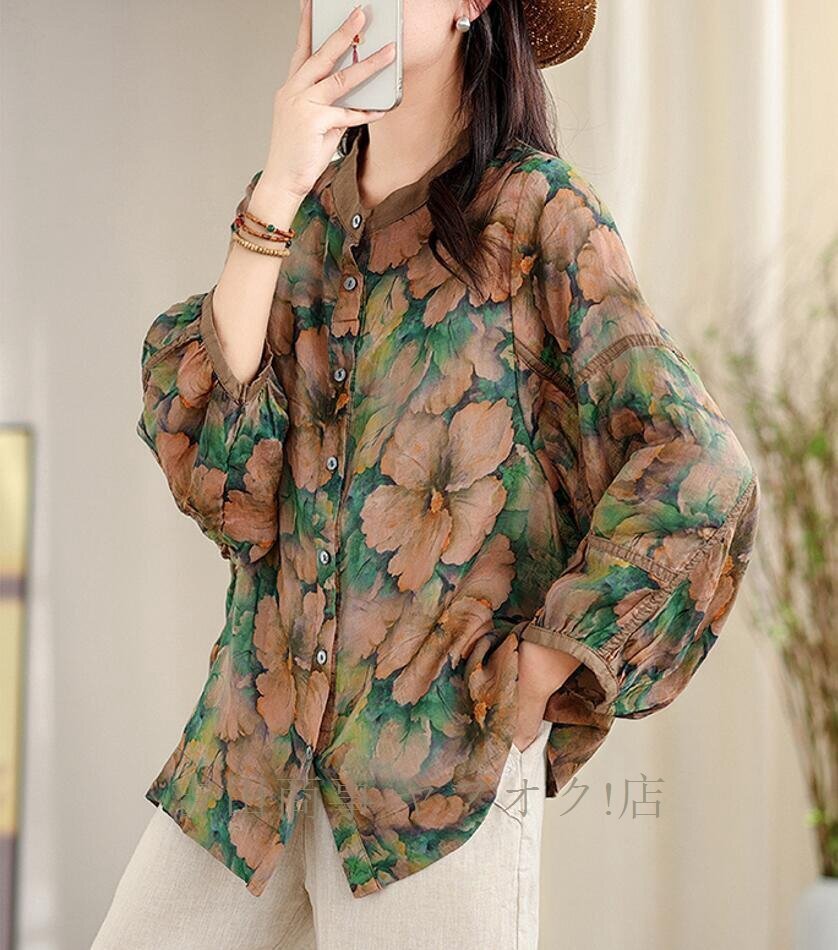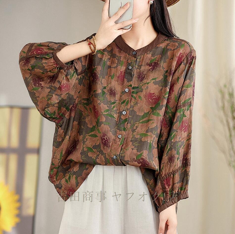 A0705☆新品春夏 トップス レディース チュニック カジュアル プリント柄 シャツ ブラウス 大きいサイズ ゆったり トップス おしゃれ