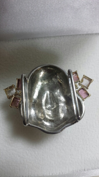 K18/SILVERダイヤモンドトルマリン帯留めうるし仕上げ手作り逸品もの新品未使用