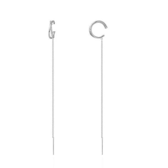 ダイヤ風デザインのイヤカフとピアスホールに通すチェーンの連係デザインです。