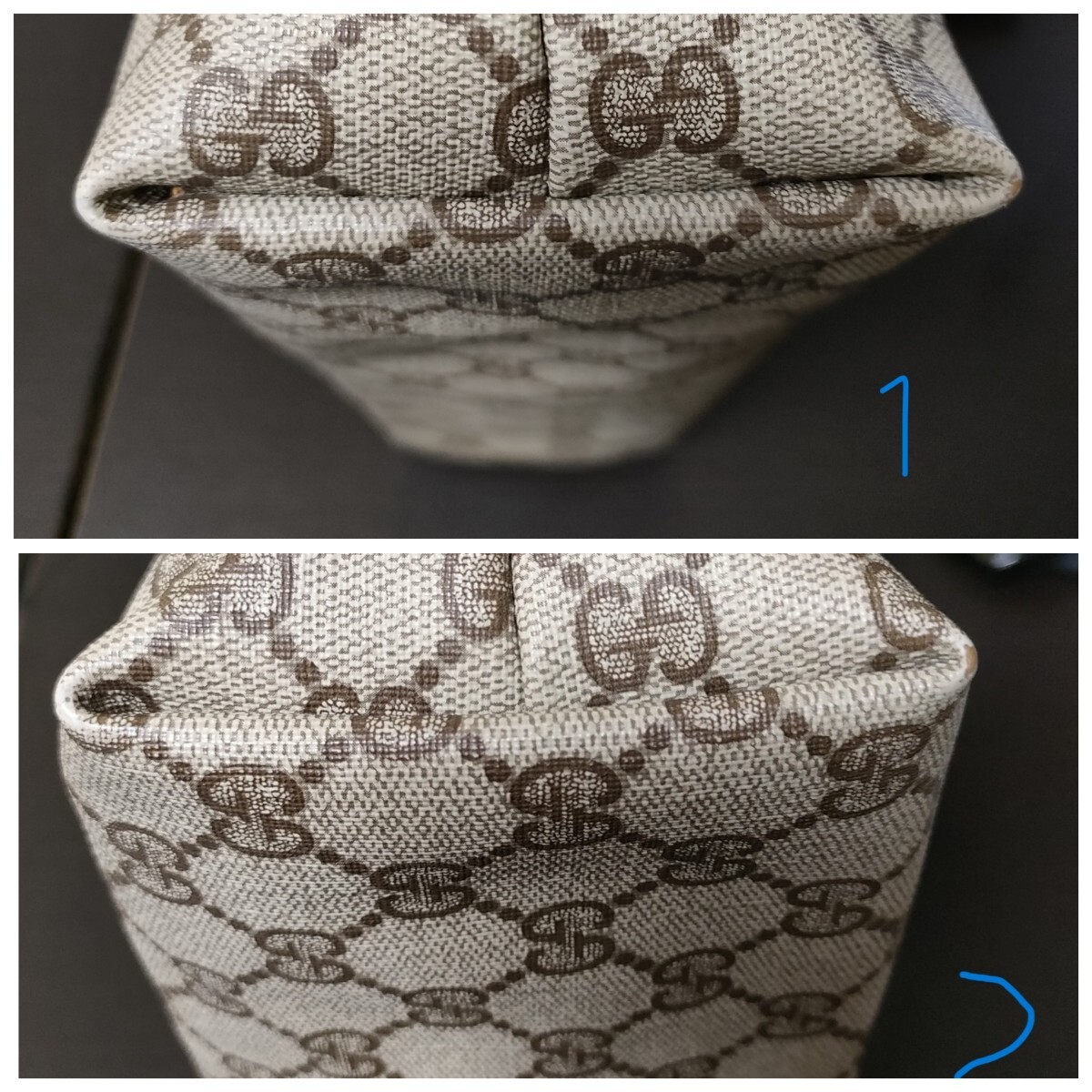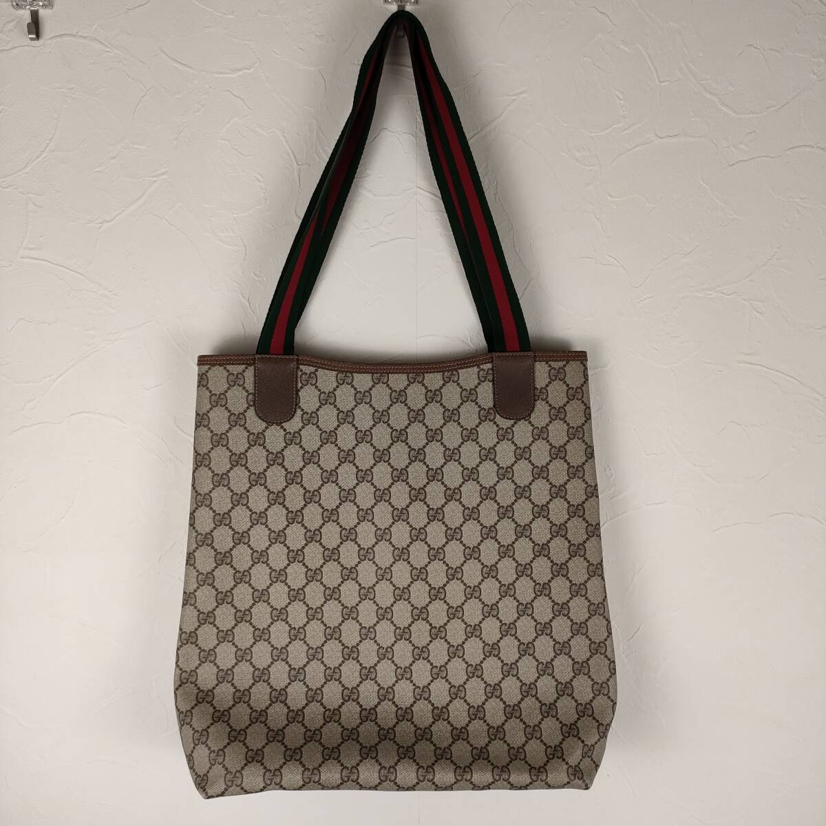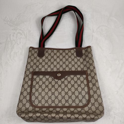 【サイズ 】 高さ:約35cm 幅:約34cm D:約8cm ハンドル:約60cm グッチ/柄/詳細...GG柄