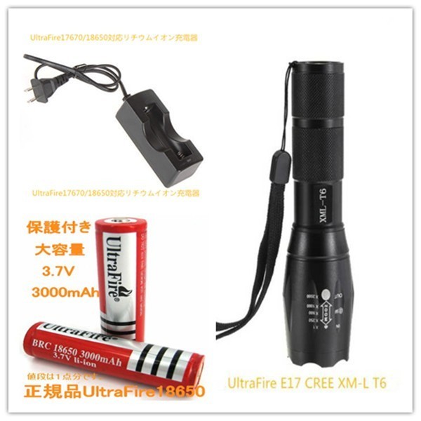 2000LM E17 CREE XM-L T6 ライト 5モード 防滴加工