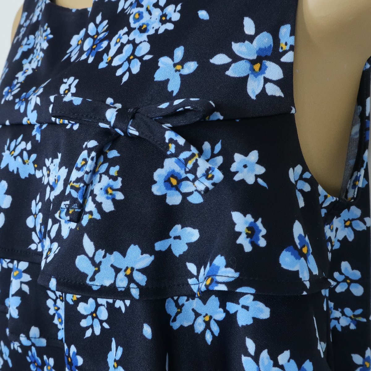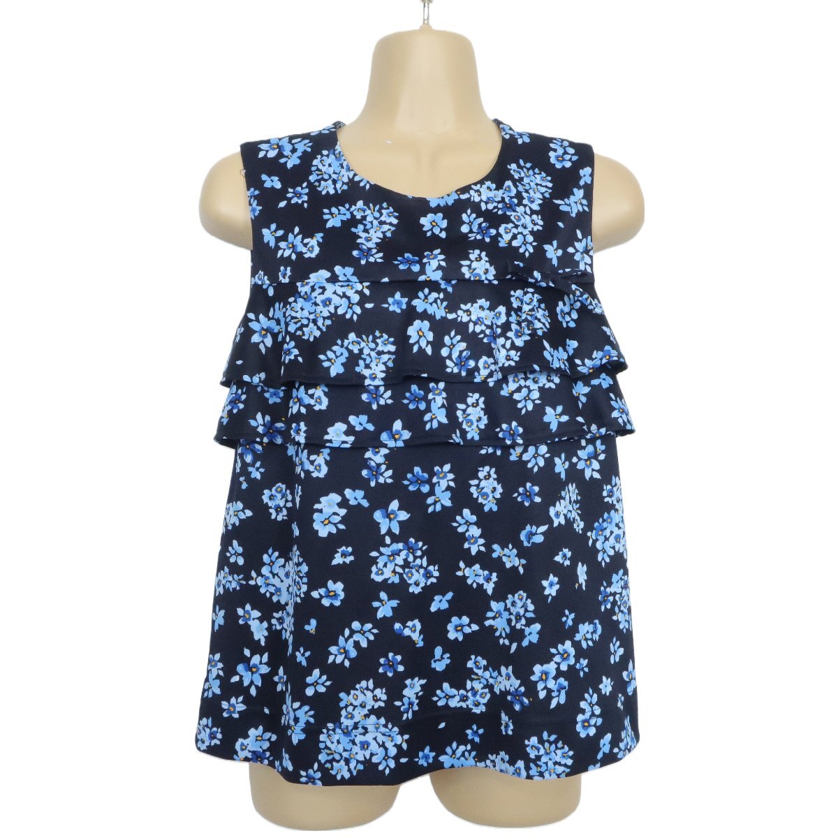 【美品】ギャラリービスコンティ★段々フリルが可愛い♪ おしゃれ タンクトップ サイズ2 花柄  ネイビー系 レターパック可 z2628