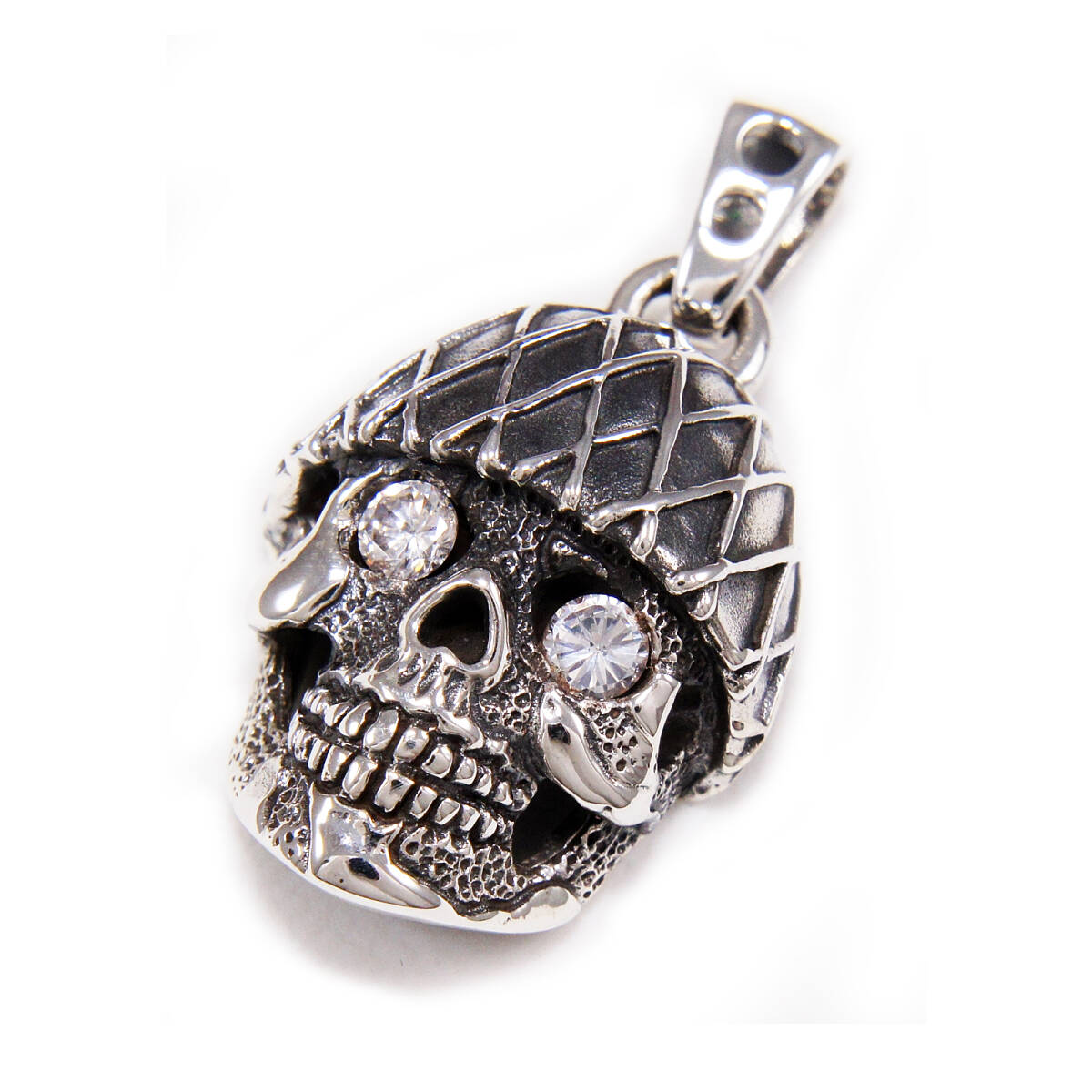 コンバットスカル 925シルバー ペンダント トップ ドクロ ジルコニア 925刻印あり 新品 メンズアクセサリー CS-011