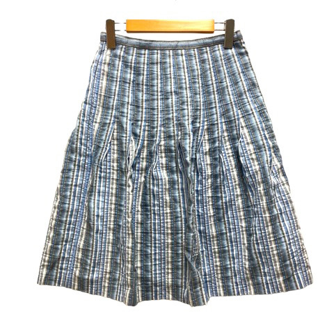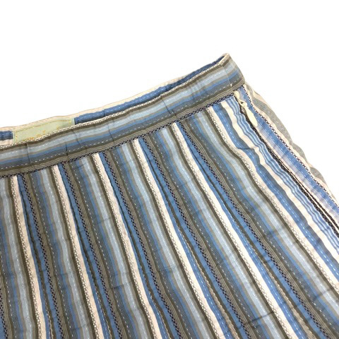 アンレクレ en recre スカート フレア タック ストライプ ラメ糸 ひざ丈 38 青 ブルー レディース