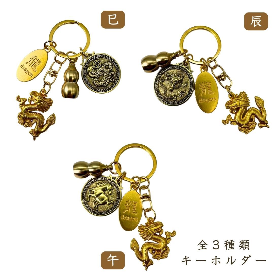 【3種類から選択】【※購入後メッセージ下さい】開運 キーホルダー 龍と干支とひょうたんのキーホルダー 辰 巳 午 龍のお守り ラッキー