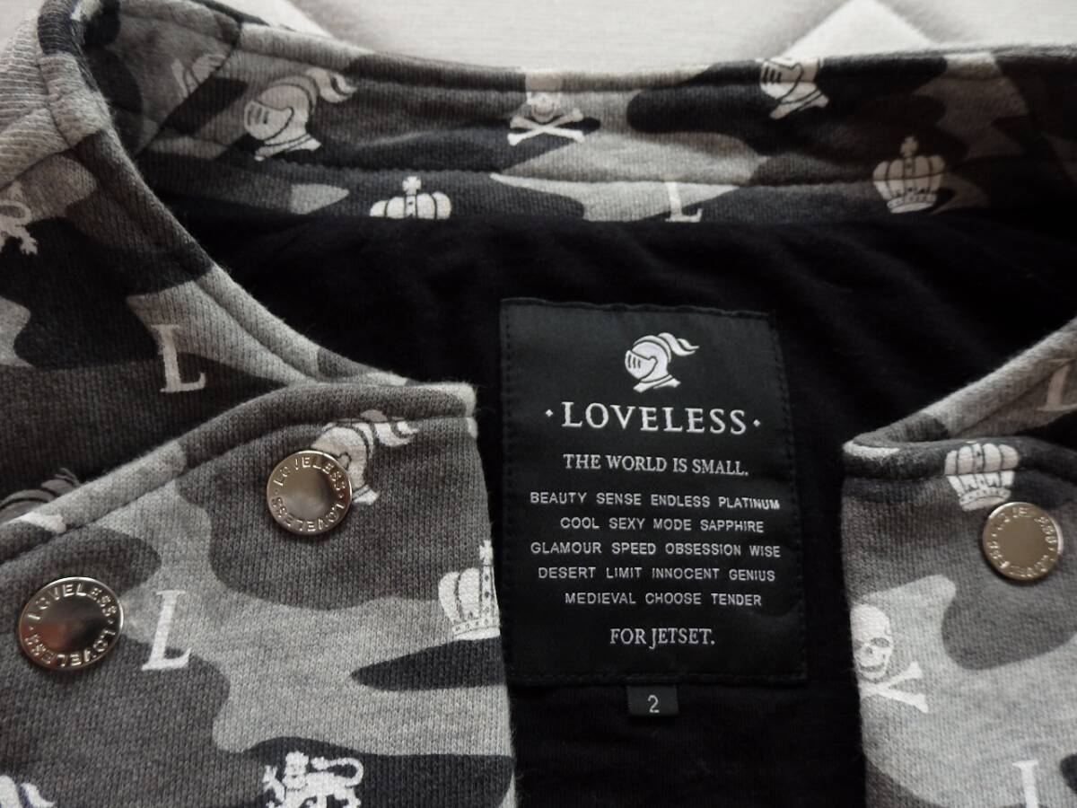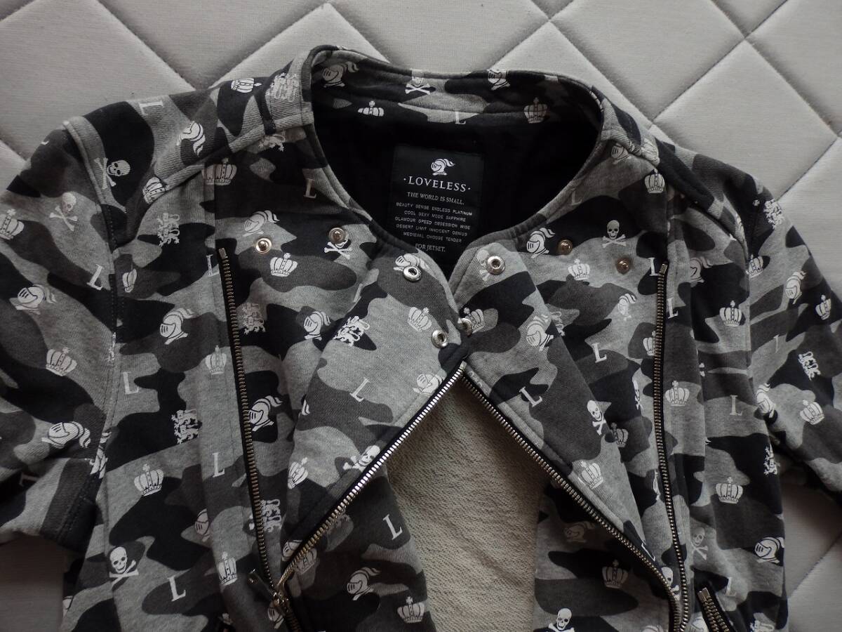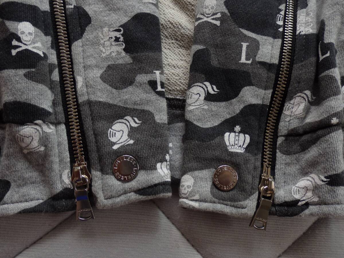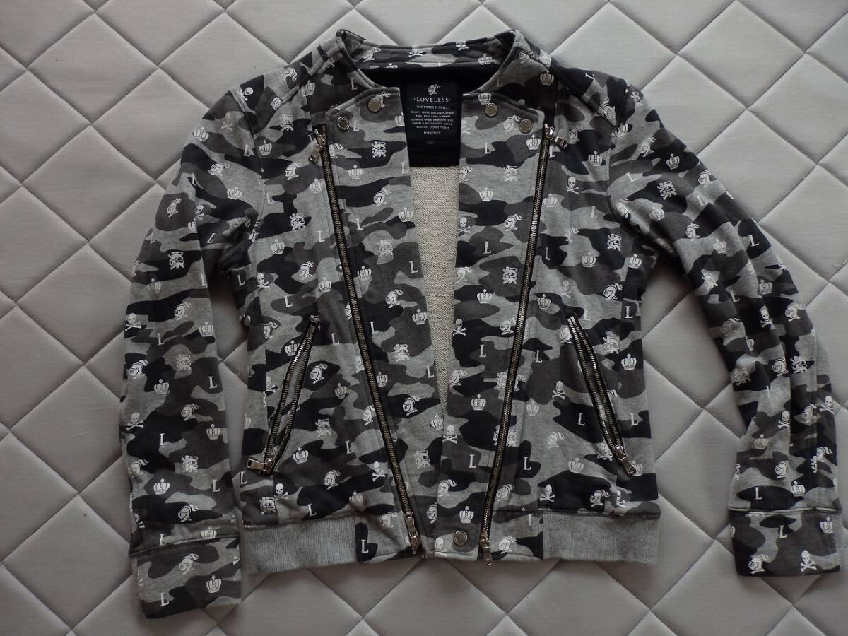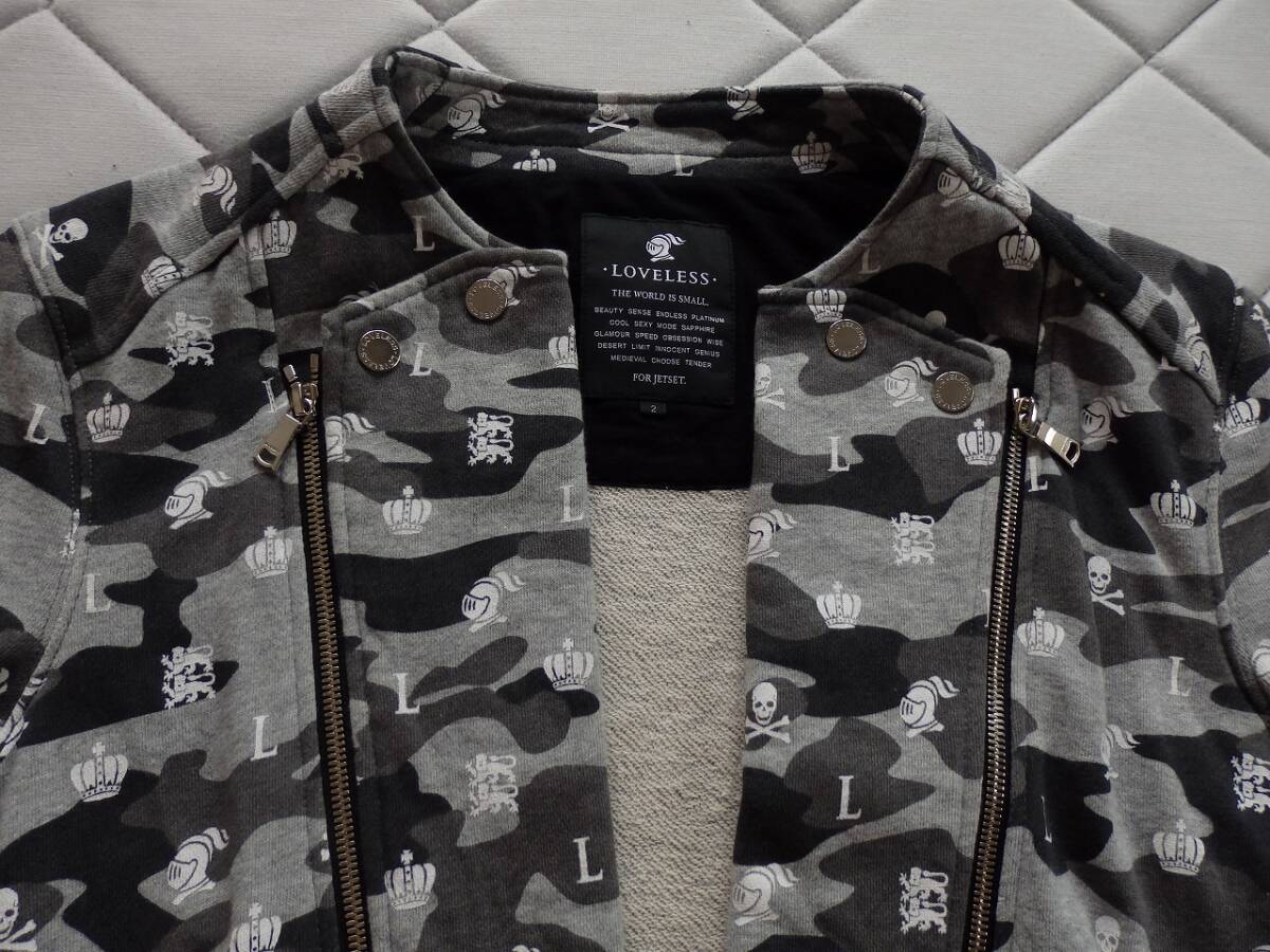 LOVELESS ラブレス ブラック×グレーカモ柄 ダブルジップアップトップス サイズ2 身長170㎝×65kg位 中古美品 トレーナー生地  使用感少なくきれい  激安!