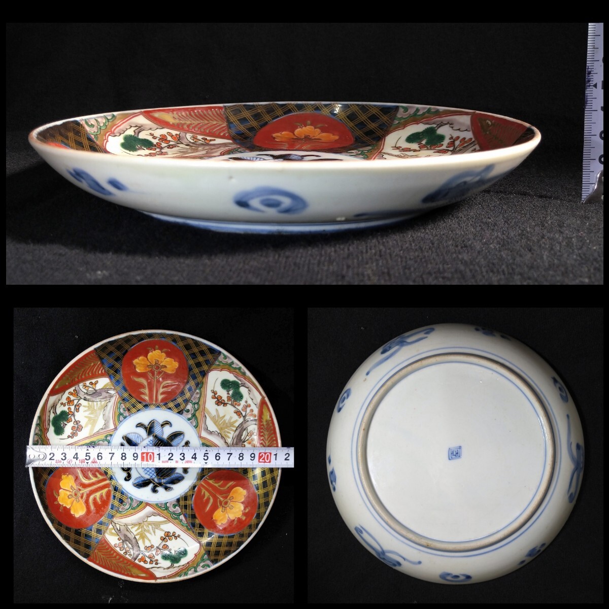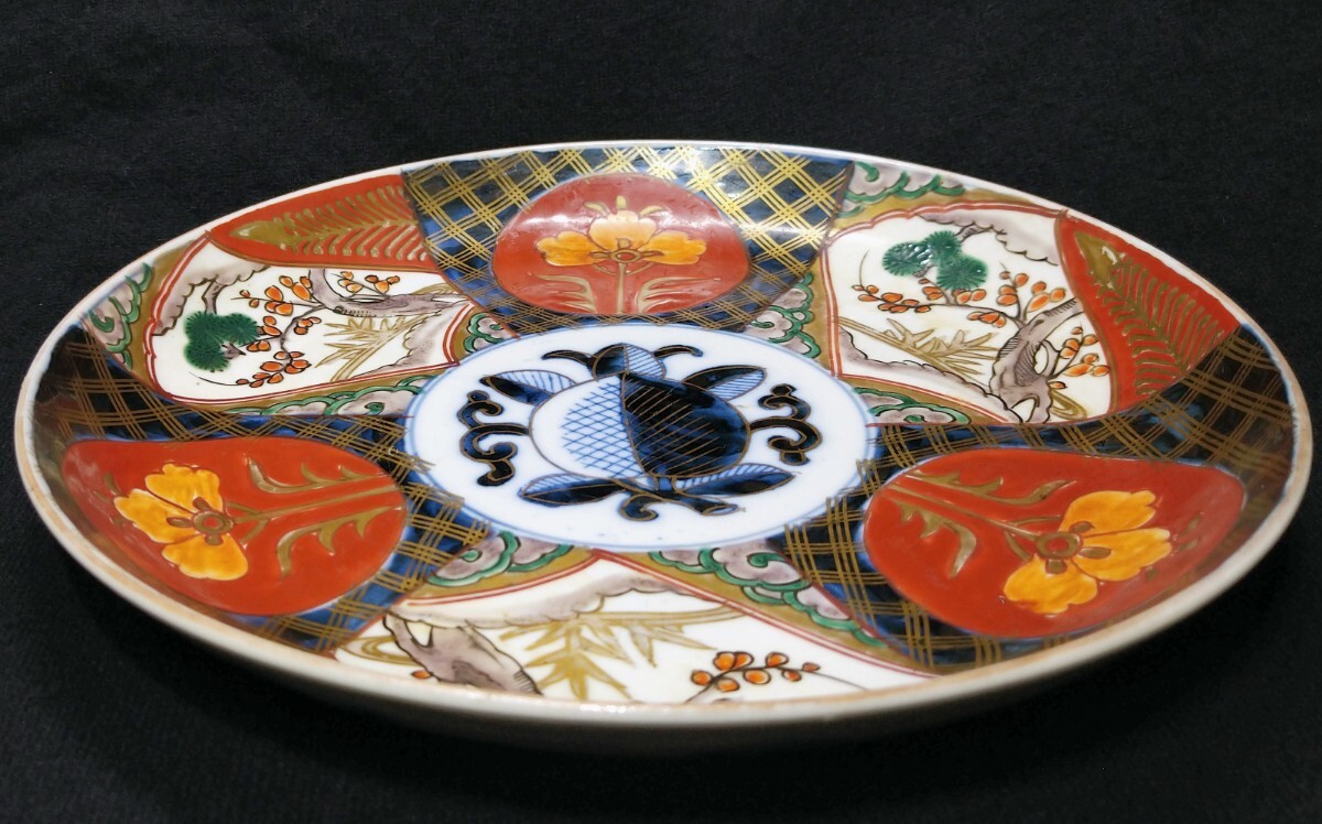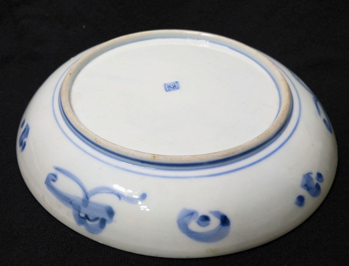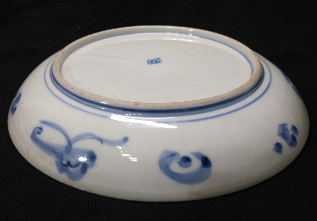 深みのある染付に金彩が映える美しい中皿でございます。素人採寸で申し訳ございませんが、径21.8cm、高さ3.4cmでございます。