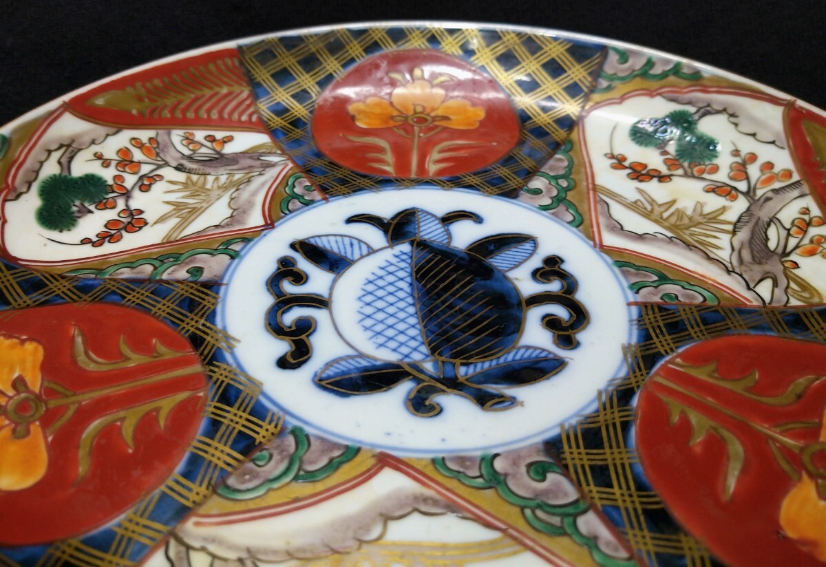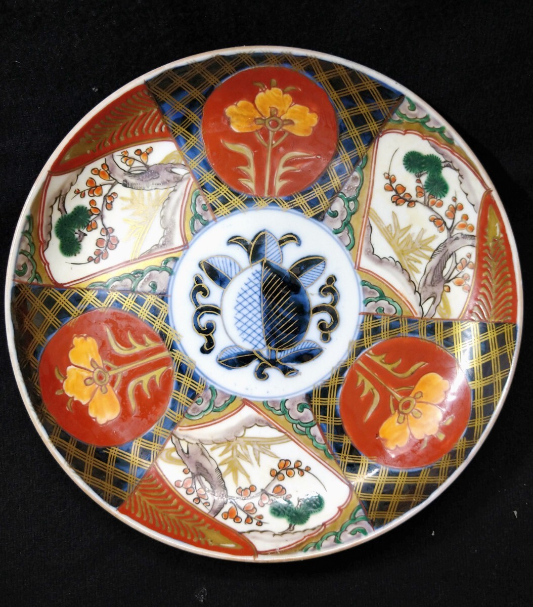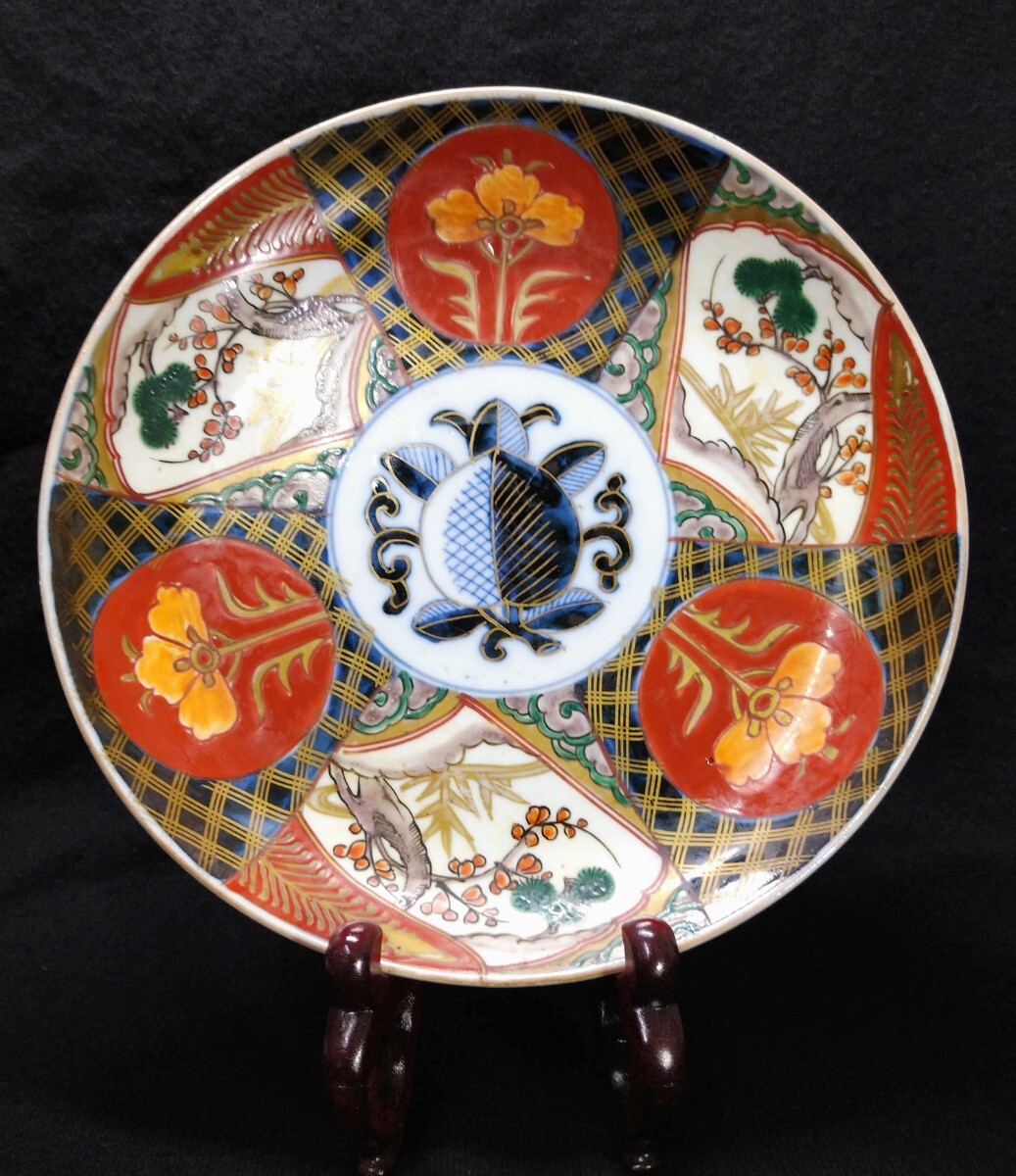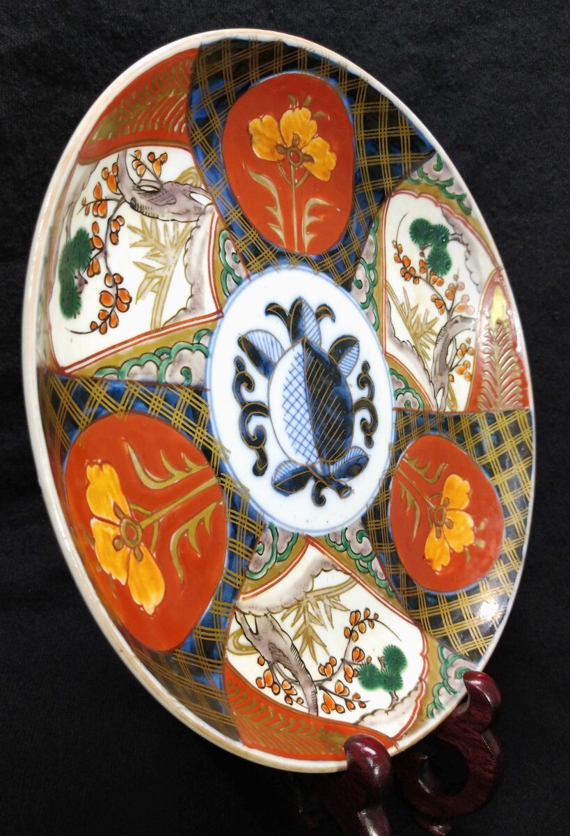 深みのある染付に金彩が映える美しい中皿でございます。素人採寸で申し訳ございませんが、径21.8cm、高さ3.4cmでございます。