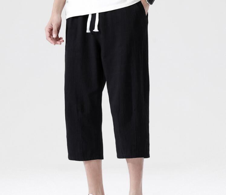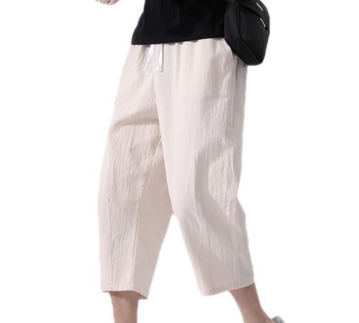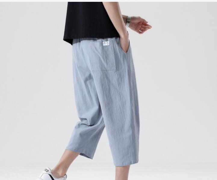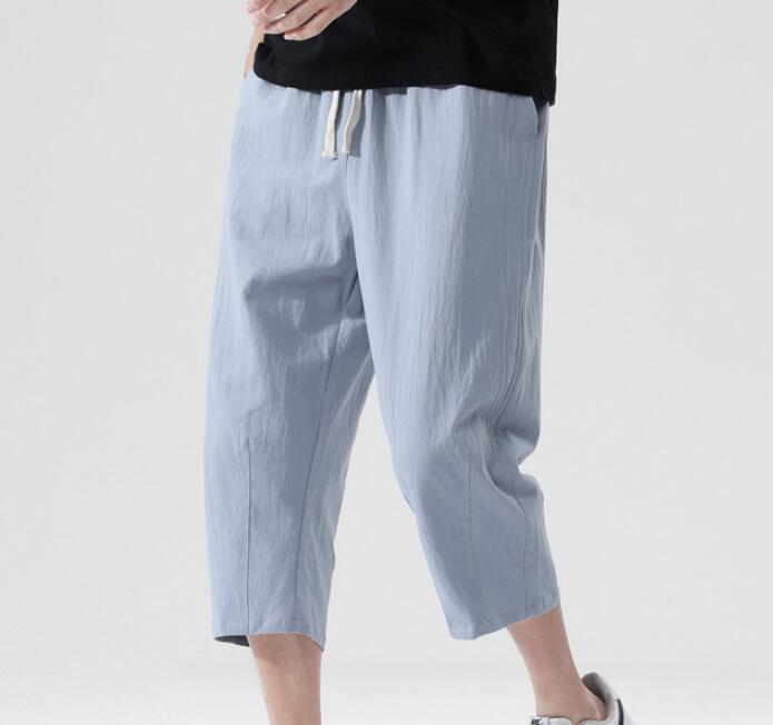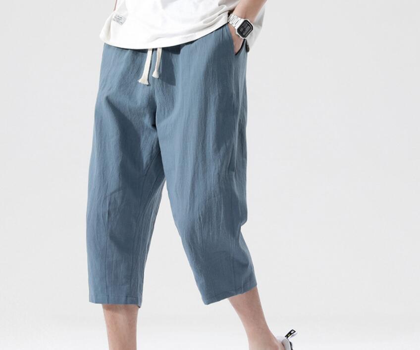夏新品★メンズ サルエルパンツ ハーレムパンツ カジュアル リネンパンツ 七分丈 ショートパンツ チノパン 大きいサイズ ブルー M-5XL