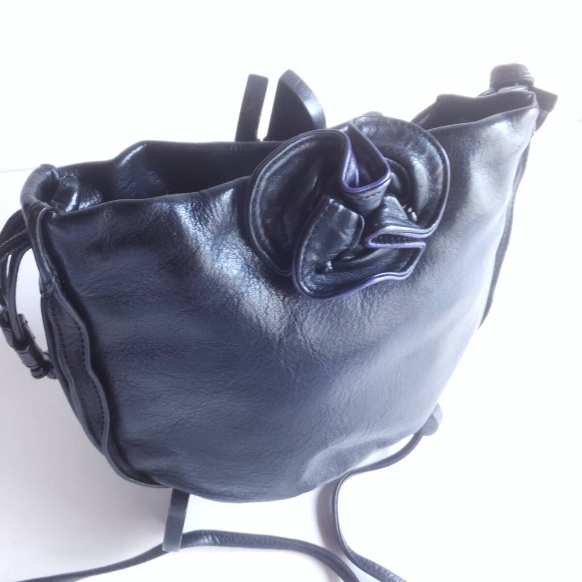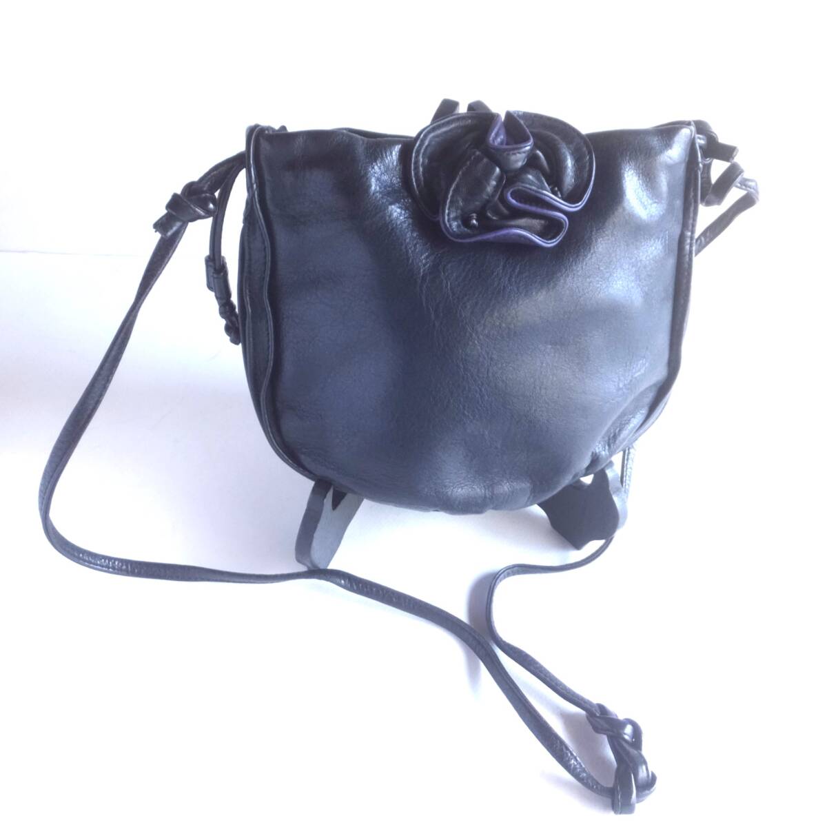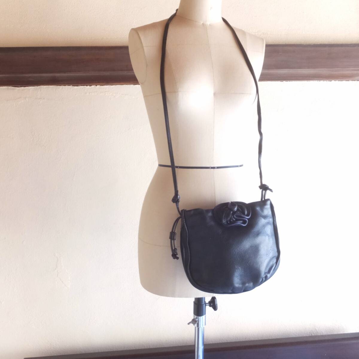 IBIZA イビザ 薔薇の花モチーフ付き レザーポーチ ショルダーバッグ バラ 本革鞄 黒 ブラック