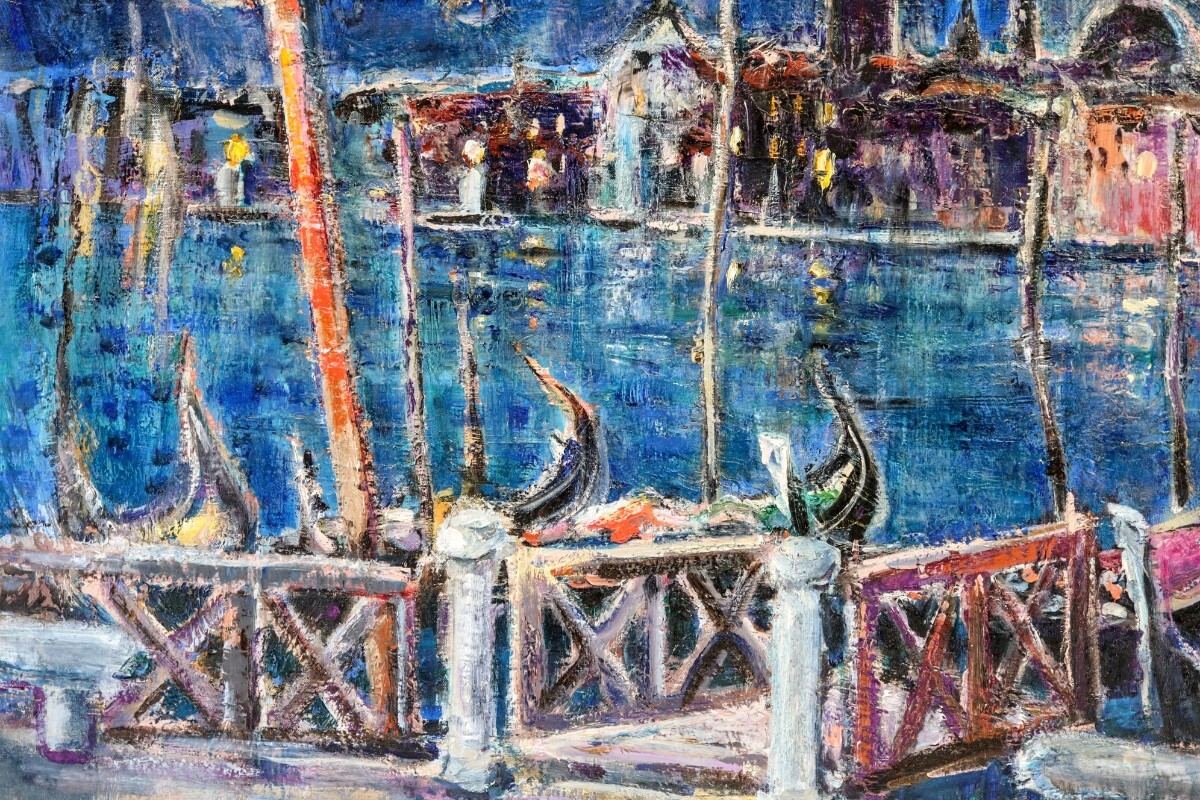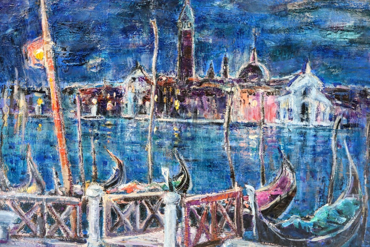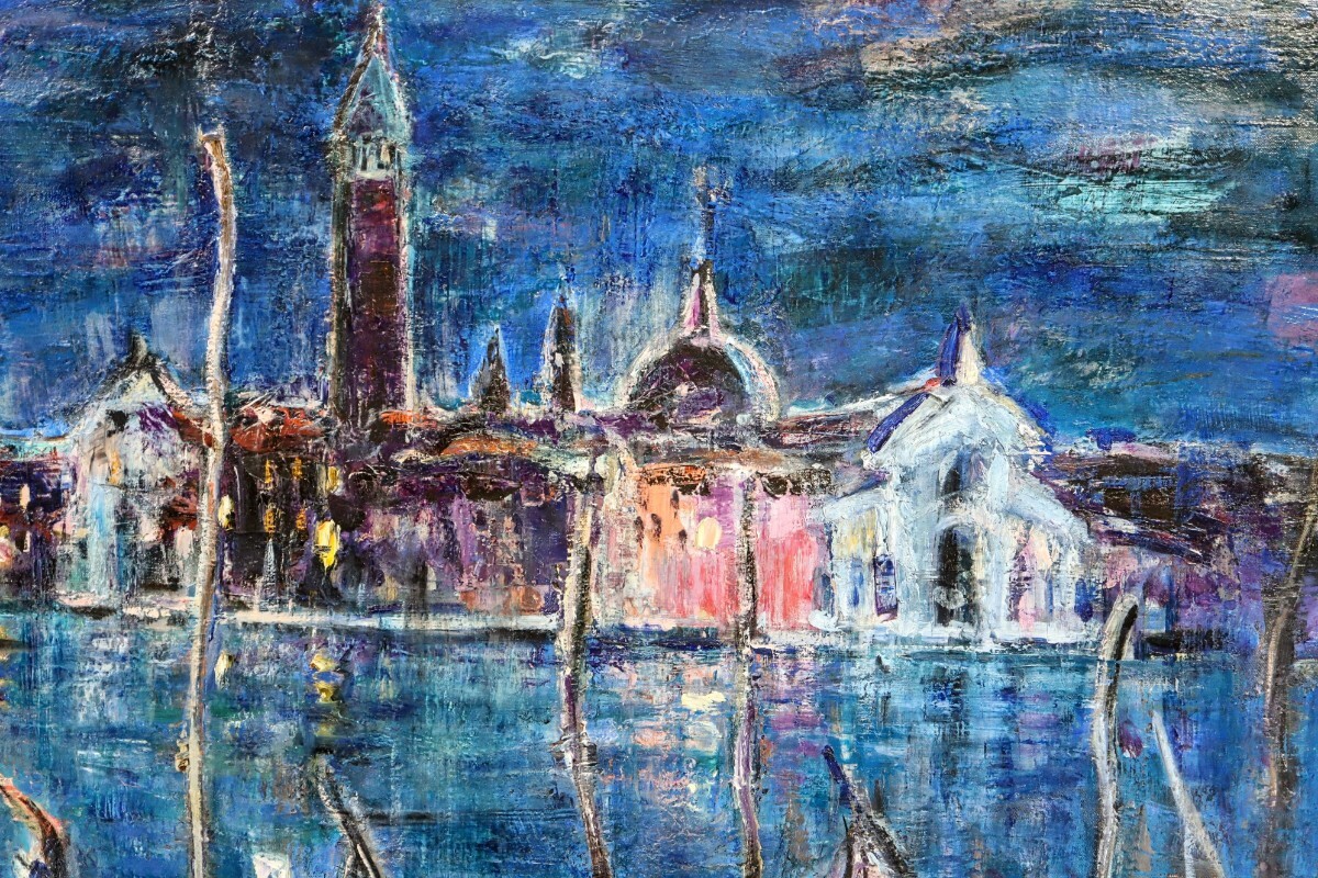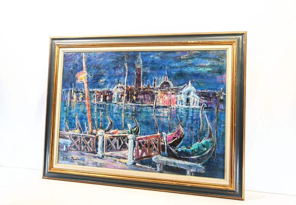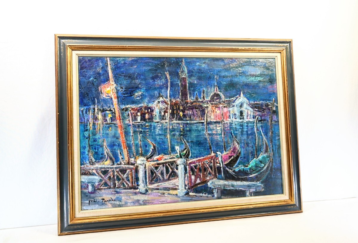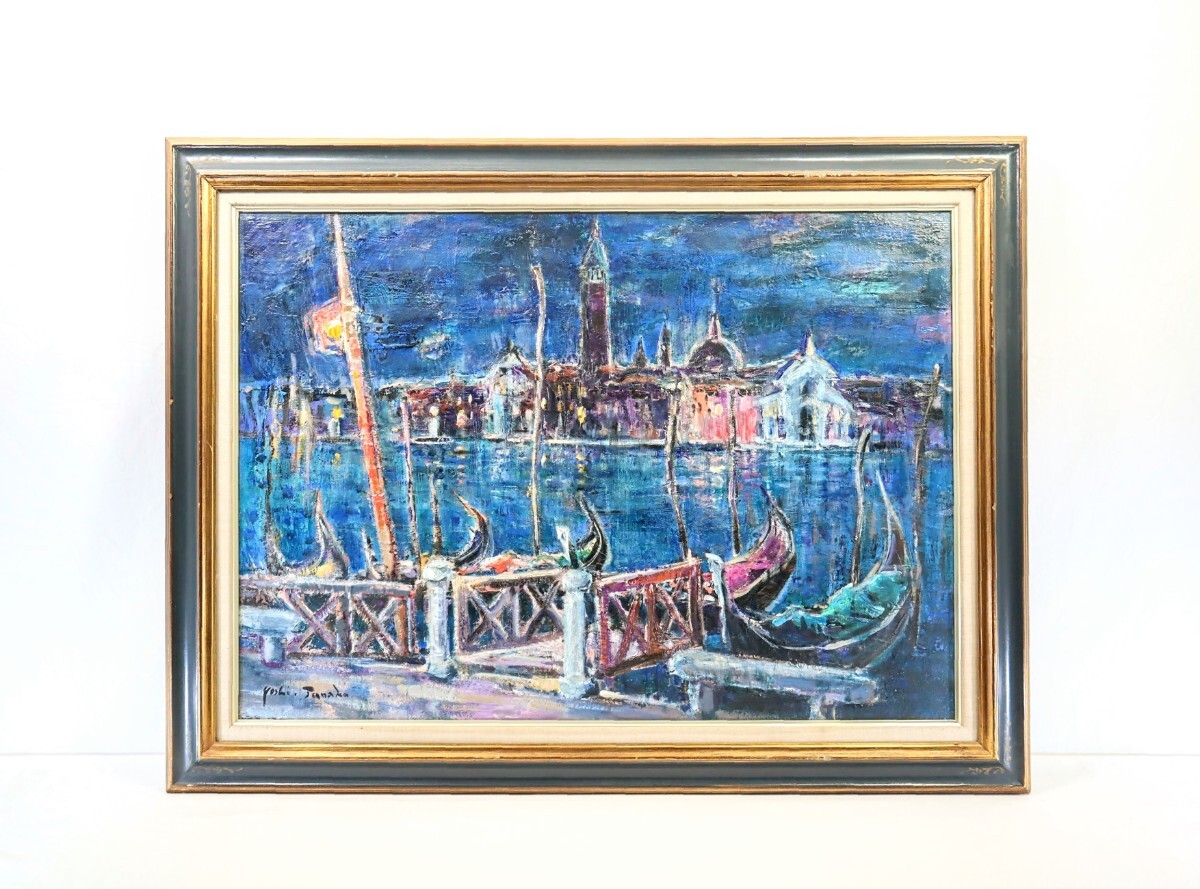 真作 田中義昭 大作油彩「ベニス夜景」画P30 神奈川県出身 一水会 木下孝則に師事 煌めく水面に映るサン ジョルジョ マッジョーレ聖堂 9515
