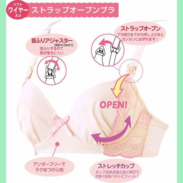 犬印 D80 産前授乳 ソフトワイヤー ストラップオープンブラジャー シャンパン